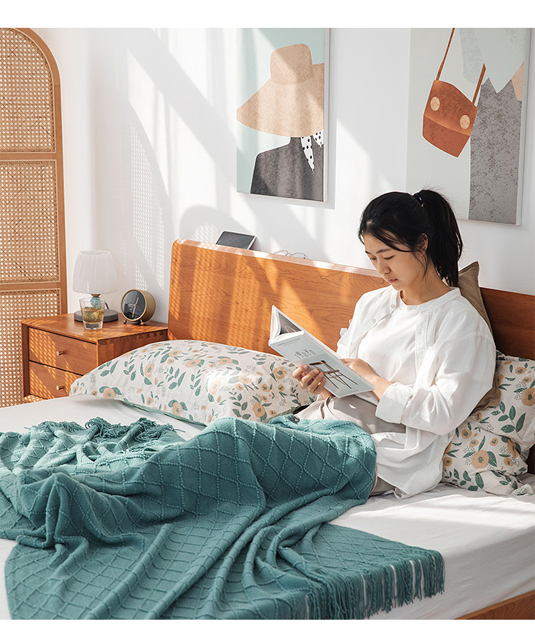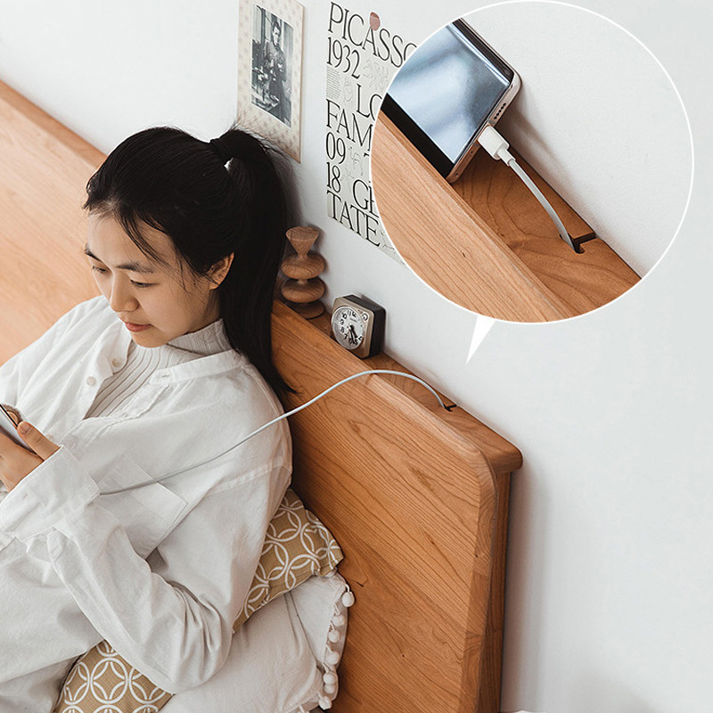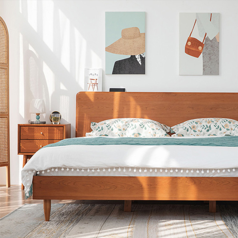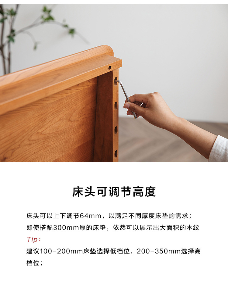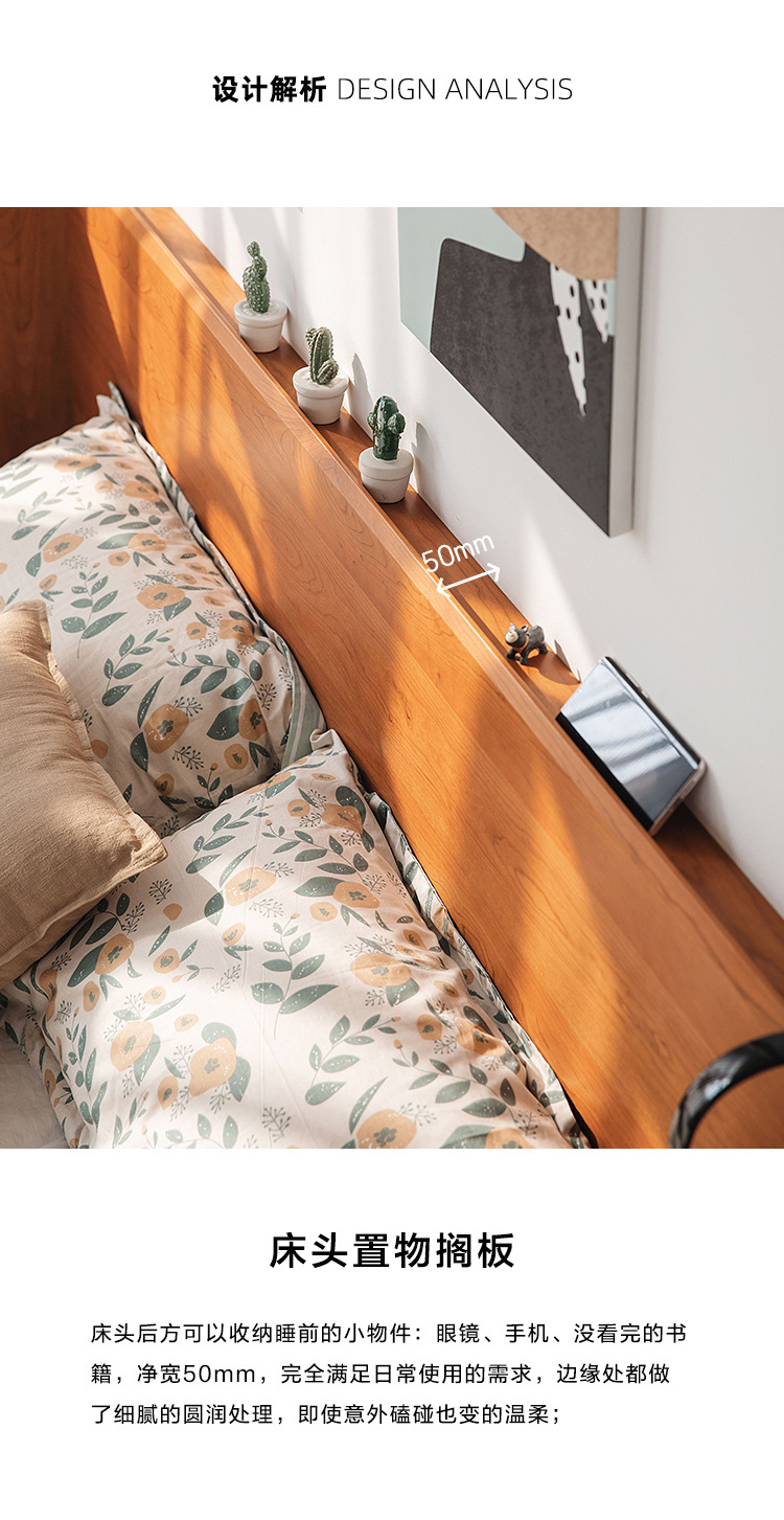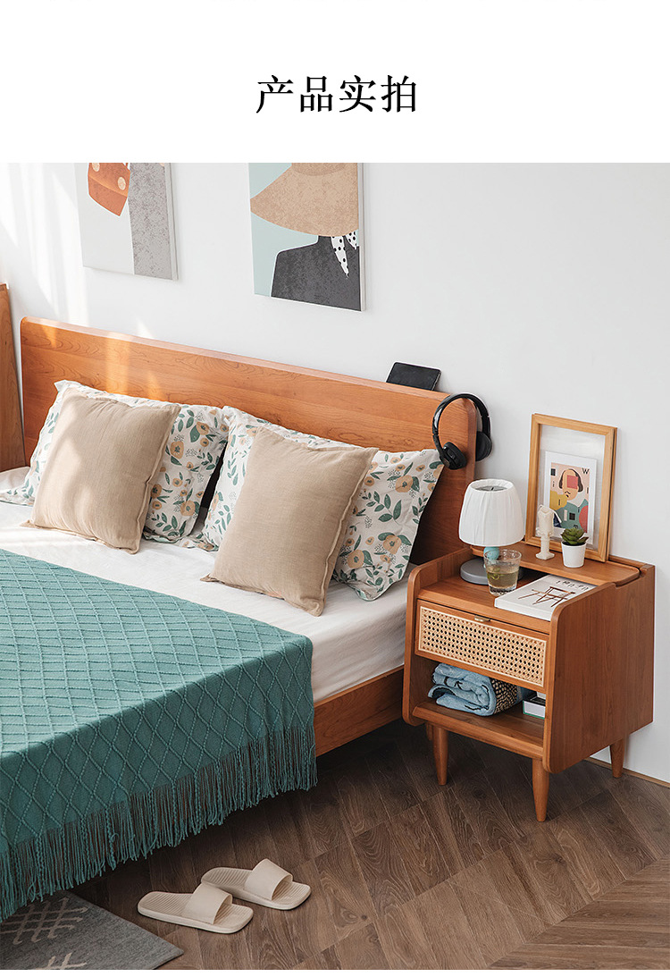 北欧樱桃木1.5小岛床日式简约卧室榻榻米原木床1.8米双人实木婚床
