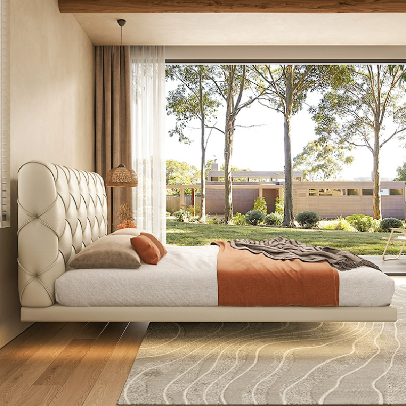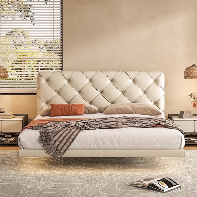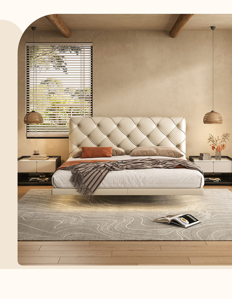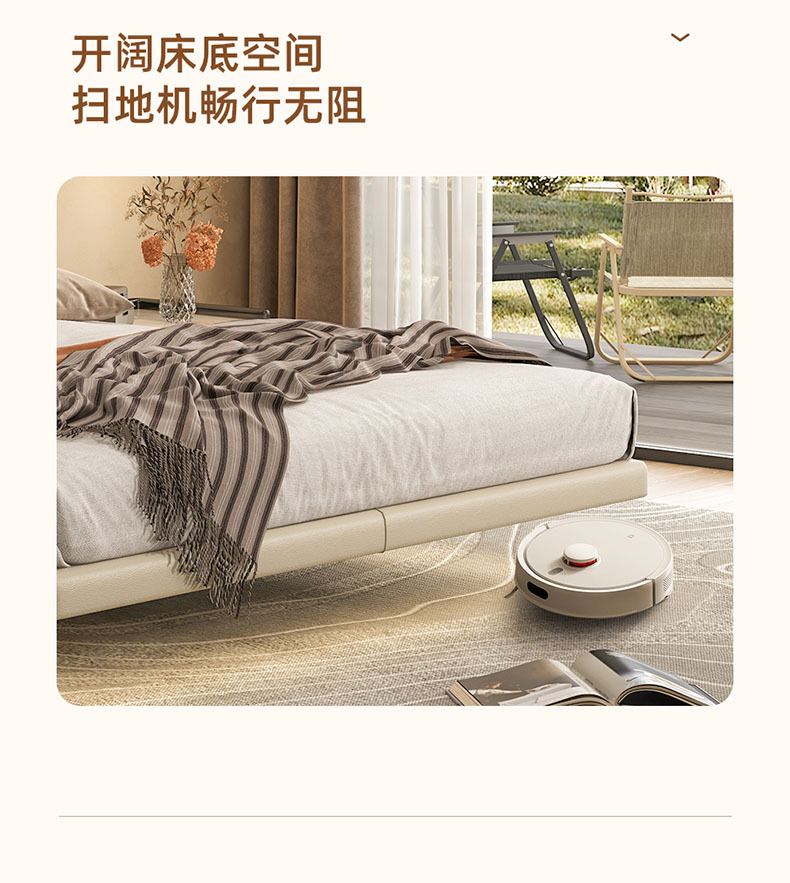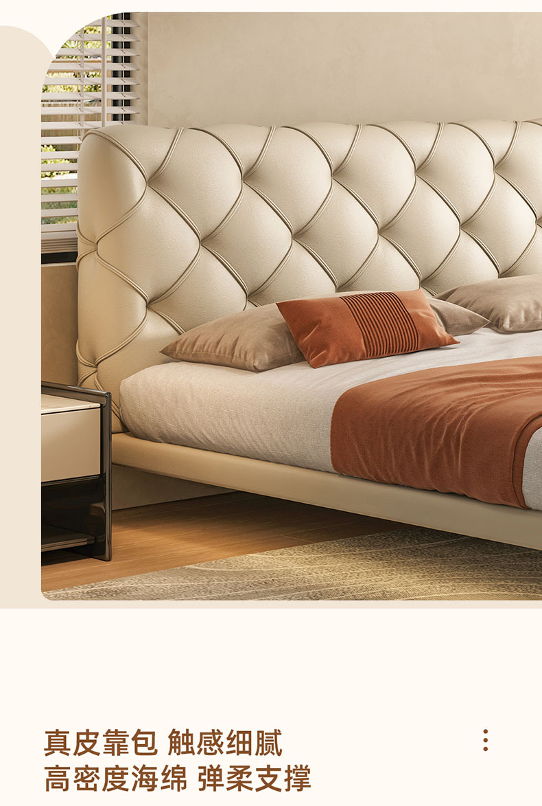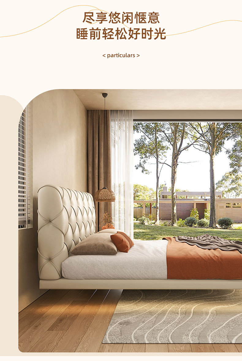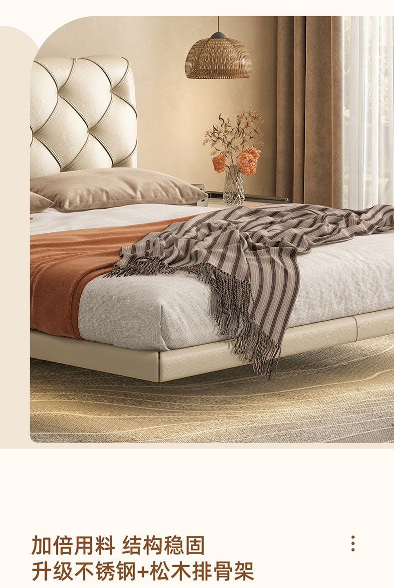悬浮床拉扣月球表面真皮床悬空灯带感应灯卧室主卧双人皮床齐边床