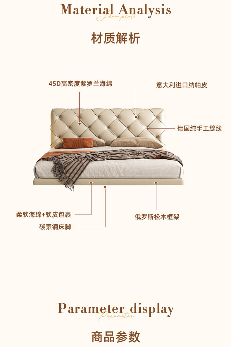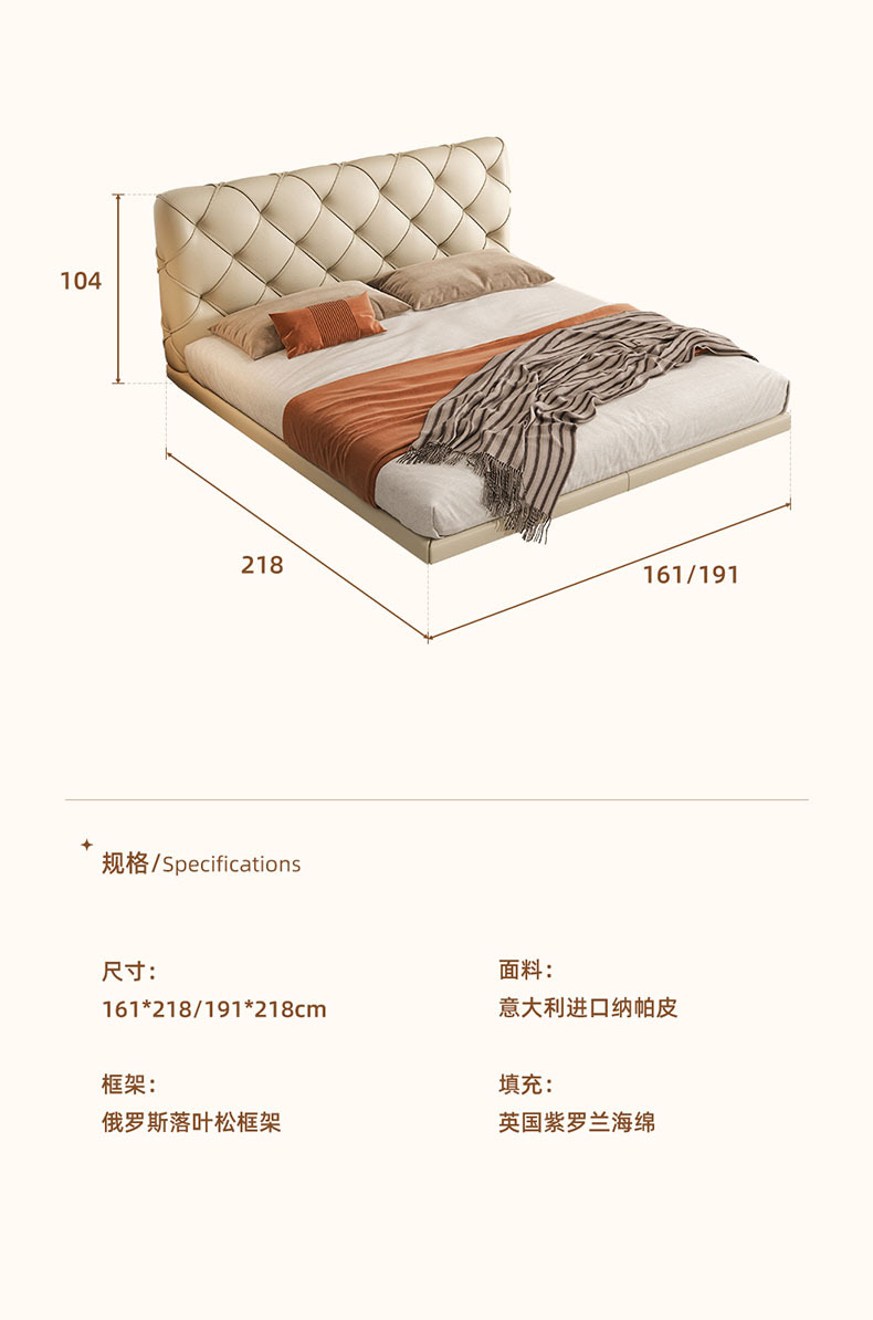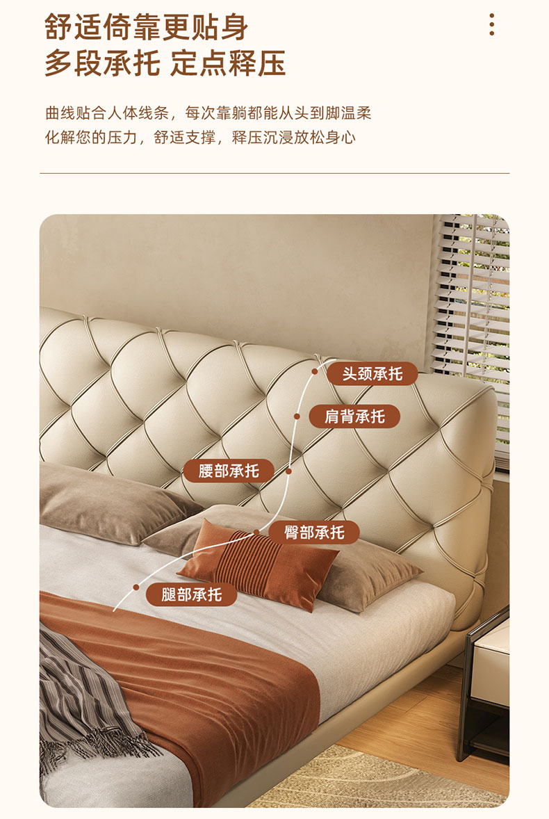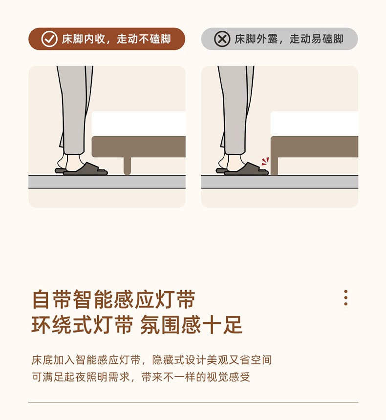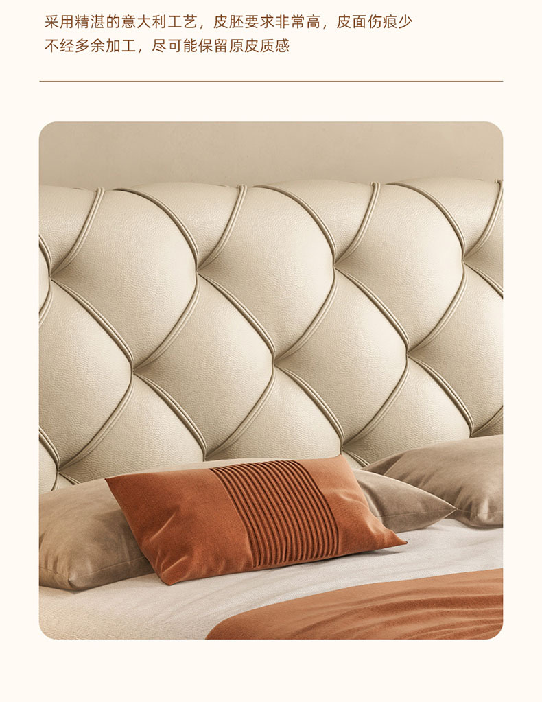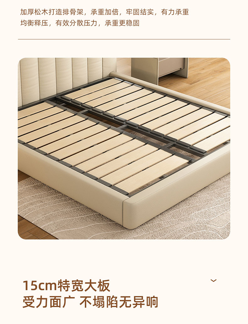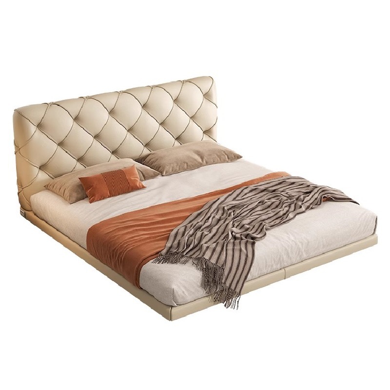 悬浮床拉扣月球表面真皮床悬空灯带感应灯卧室主卧双人皮床齐边床