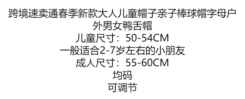 跨境速卖通春季新款大人儿童帽子亲子棒球帽字母户外男女鸭舌帽