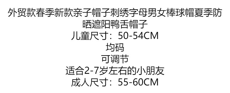 外贸款春季新款亲子帽子刺绣字母男女棒球帽夏季防晒遮阳鸭舌帽子