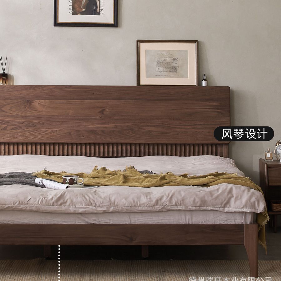 朴愫木作北欧全实木床北美黑胡桃木家具主卧1.8双人大床原木复古