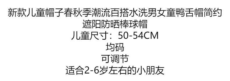 新款儿童帽子春秋季潮流百搭水洗男女童鸭舌帽简约遮阳防晒棒球帽