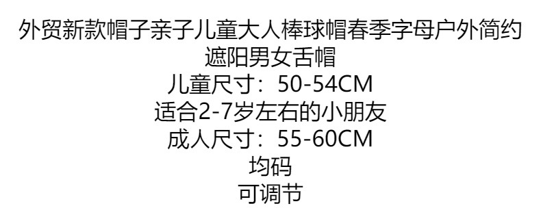 外贸新款帽子亲子儿童大人棒球帽春季字母户外简约遮阳男女舌帽