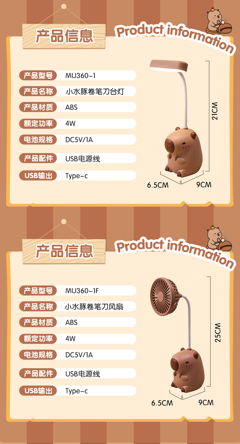 小水豚拉卷笔刀台灯小夜灯家居装饰品摆件送女生送闺蜜乔迁台灯