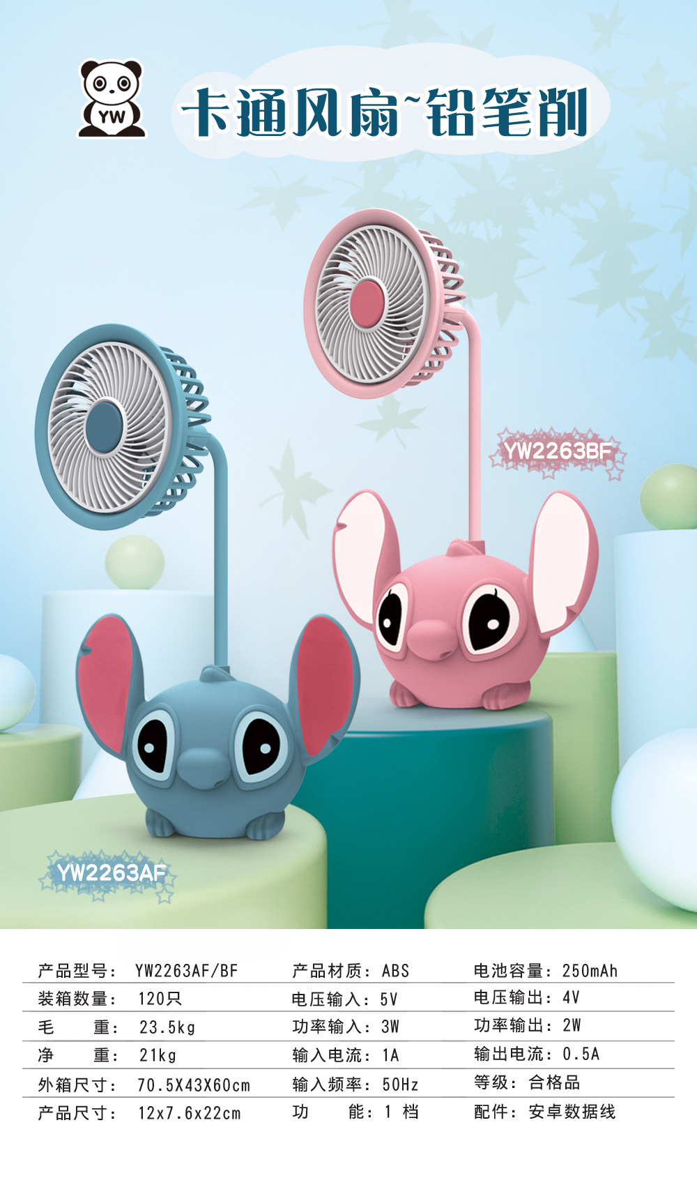 卡通卷笔刀小风扇儿童学生迷你随身卡通便携式桌面风扇usb充电