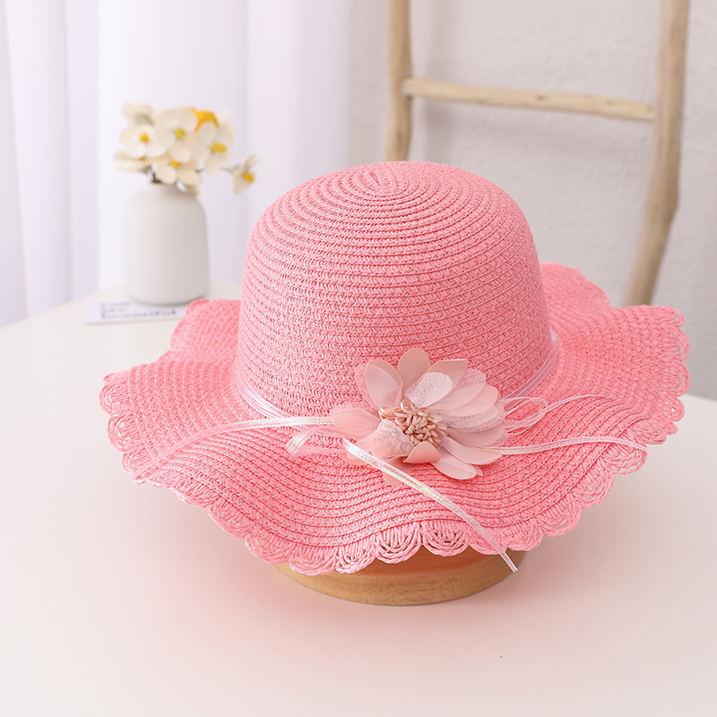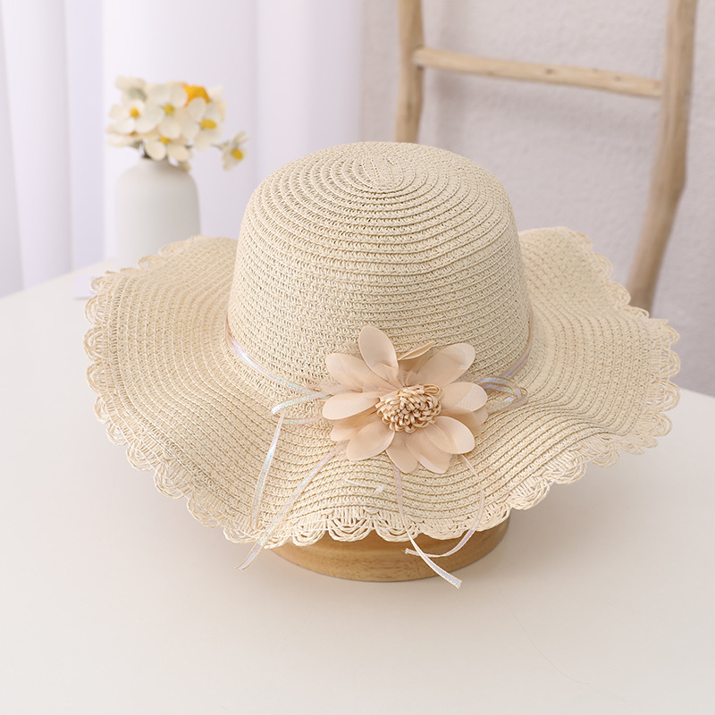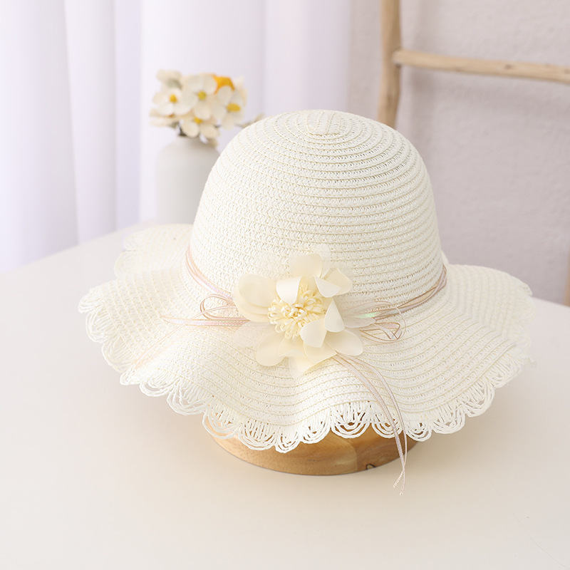 小清新帽子儿童防晒太阳帽子包包女童夏沙滩帽波浪草帽遮阳帽凉帽