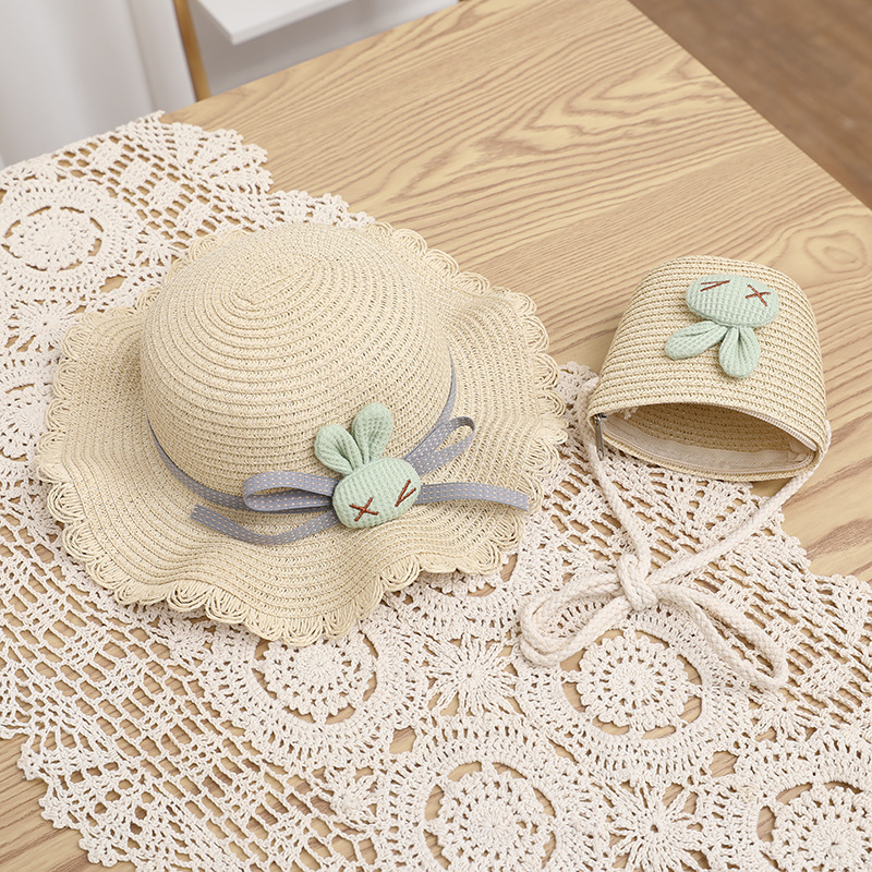新款夏季亲子草帽包包套装儿童海边沙滩遮阳帽女童卡通可爱太阳帽