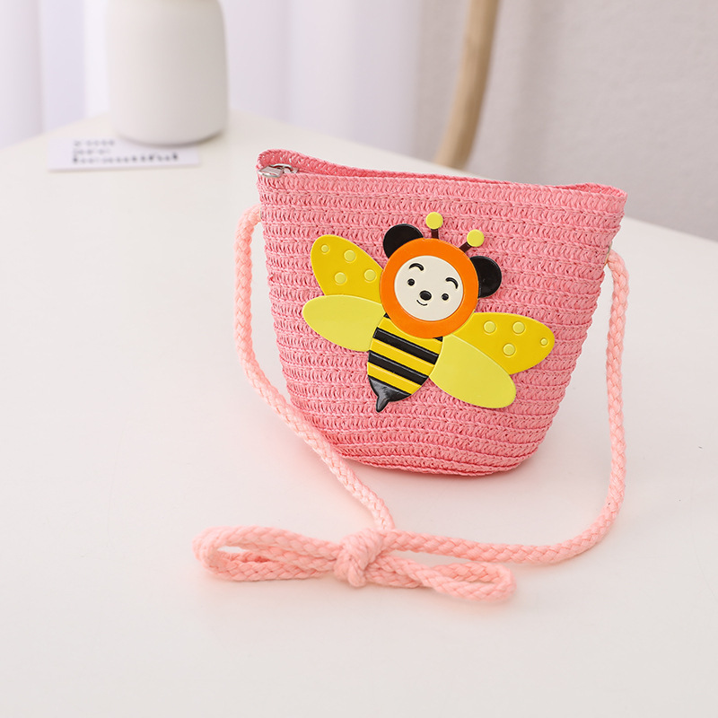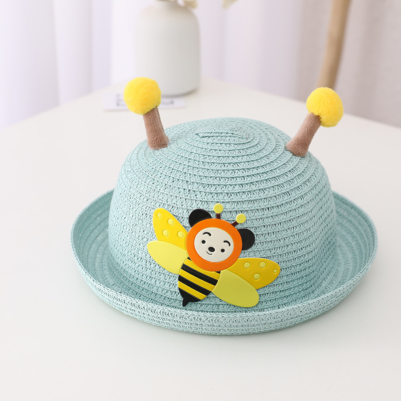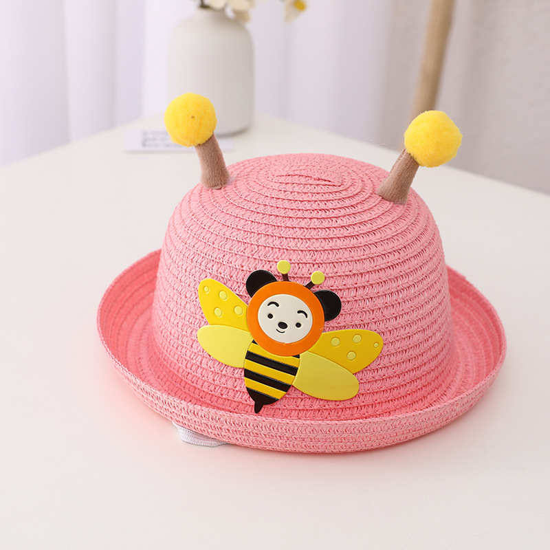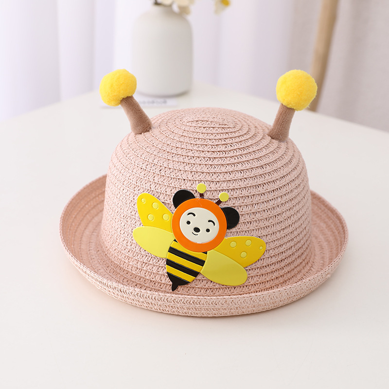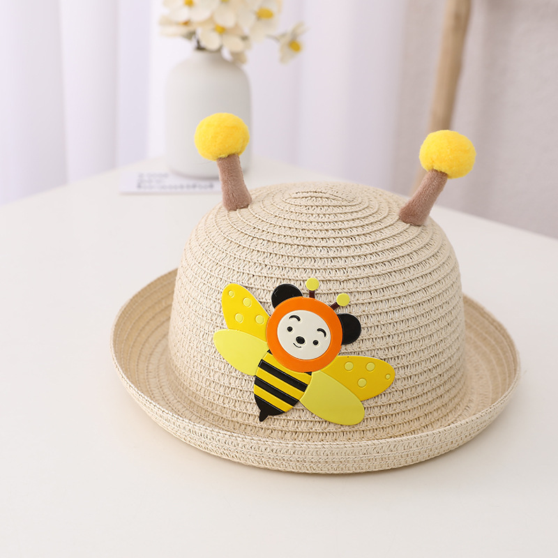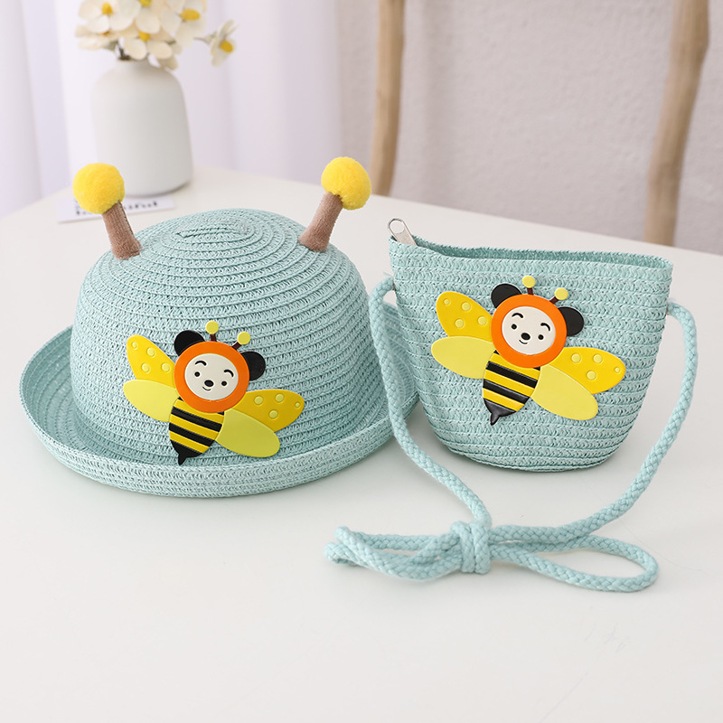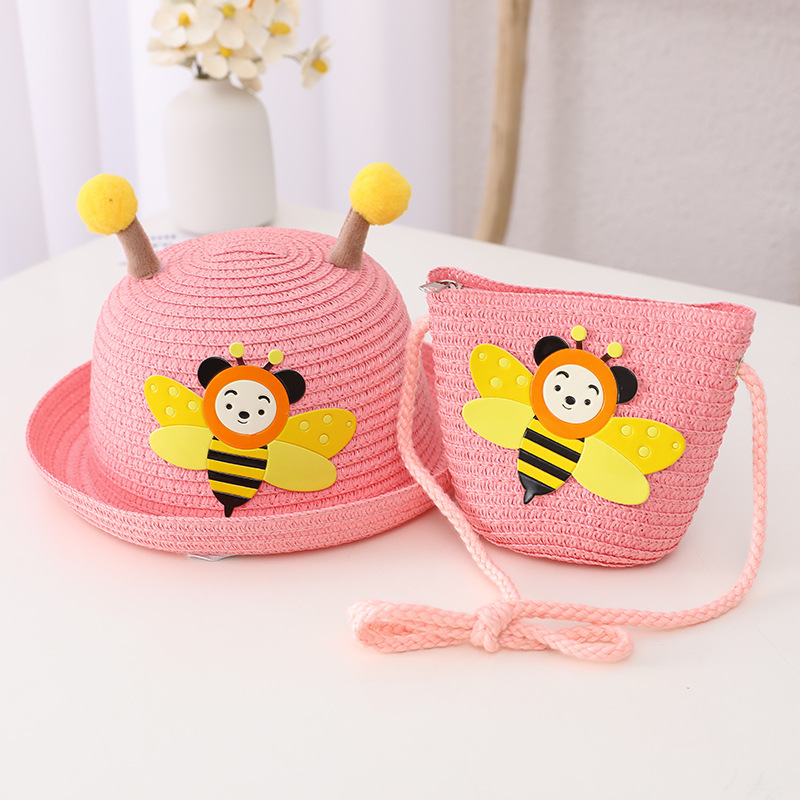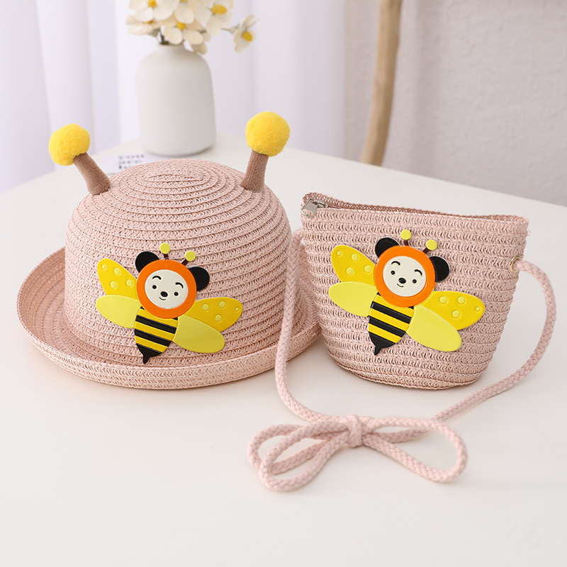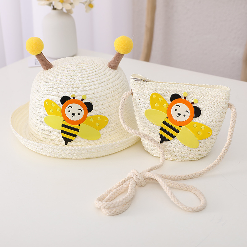 儿童小蜜蜂草帽夏季薄款防晒女童出游海边遮阳帽包包太阳帽沙滩帽