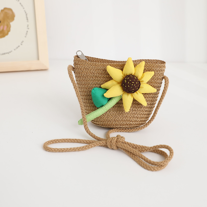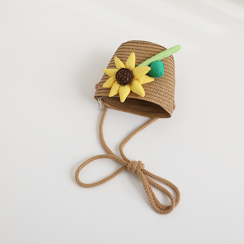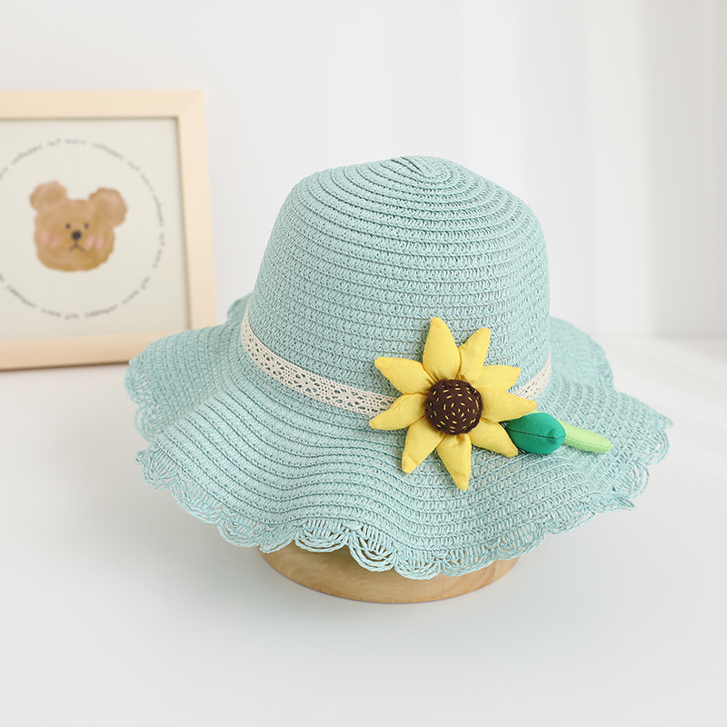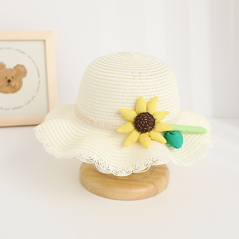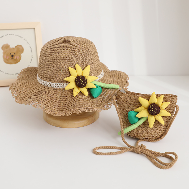 新款儿童遮阳帽女童春夏可爱花朵公主草帽+包包套装防晒大檐太阳