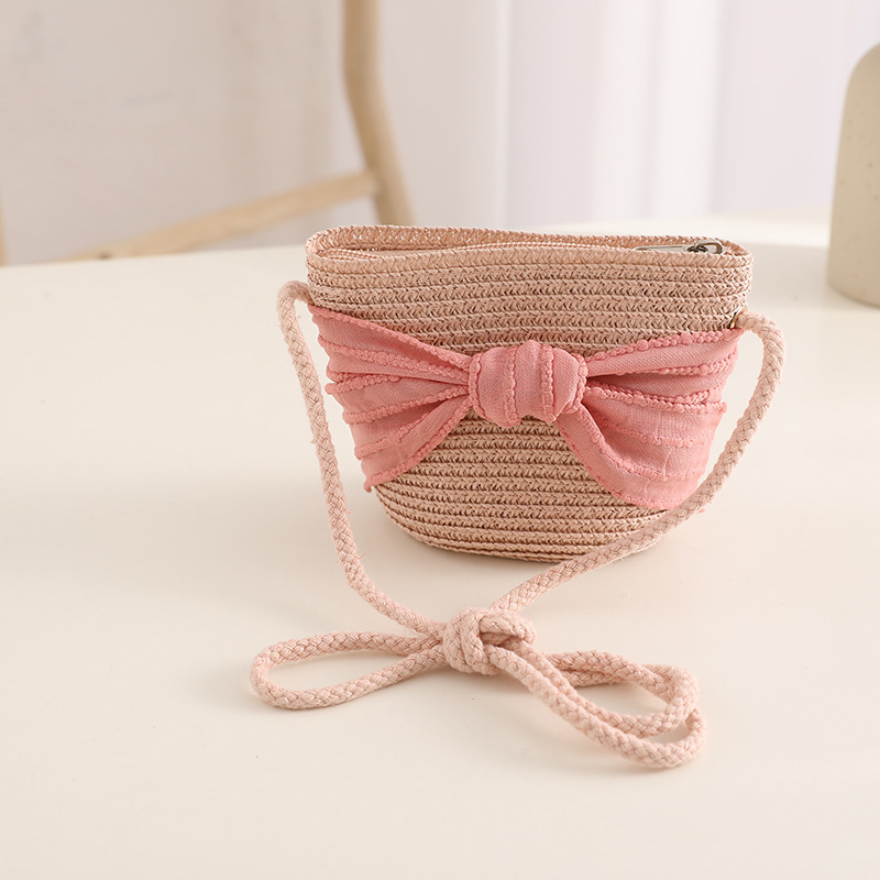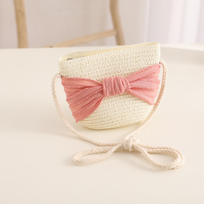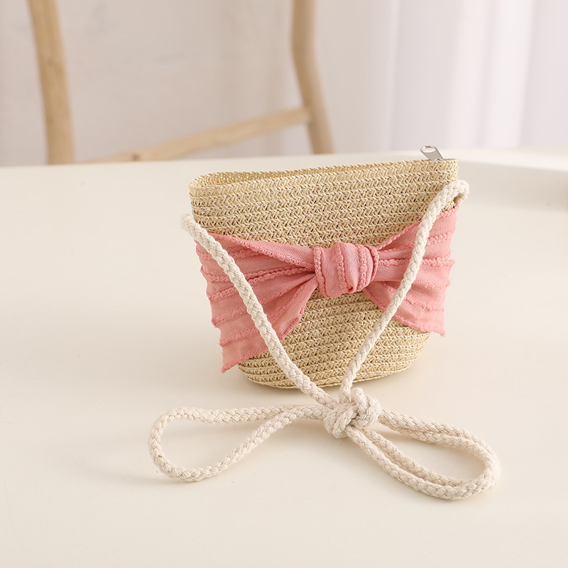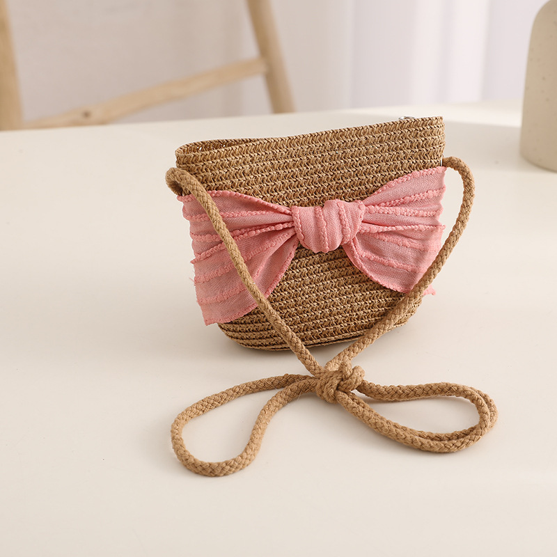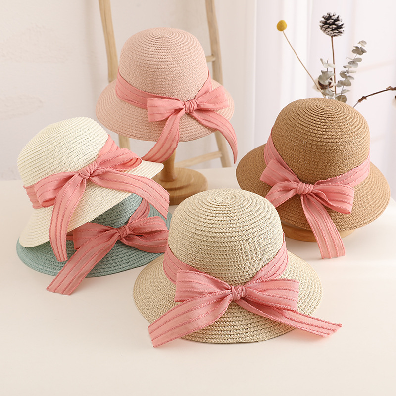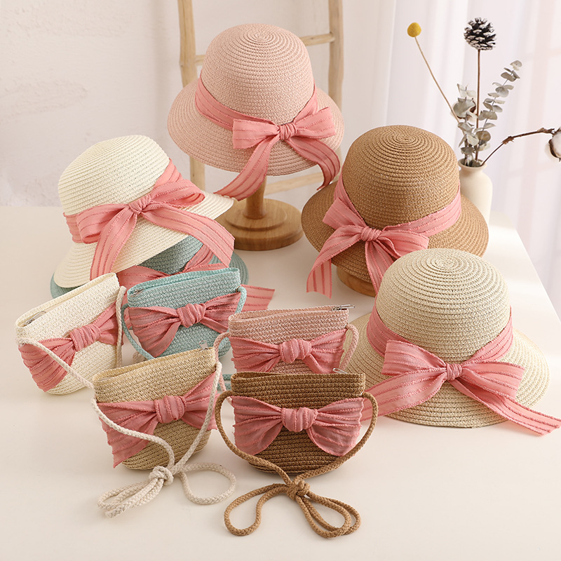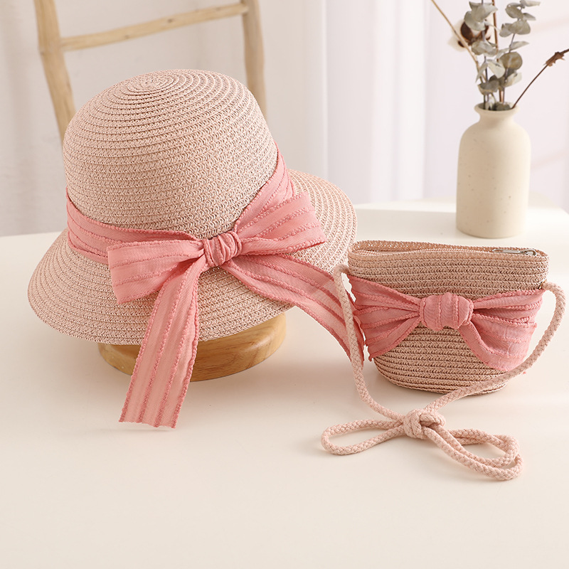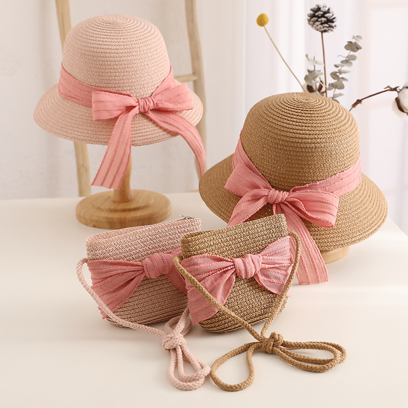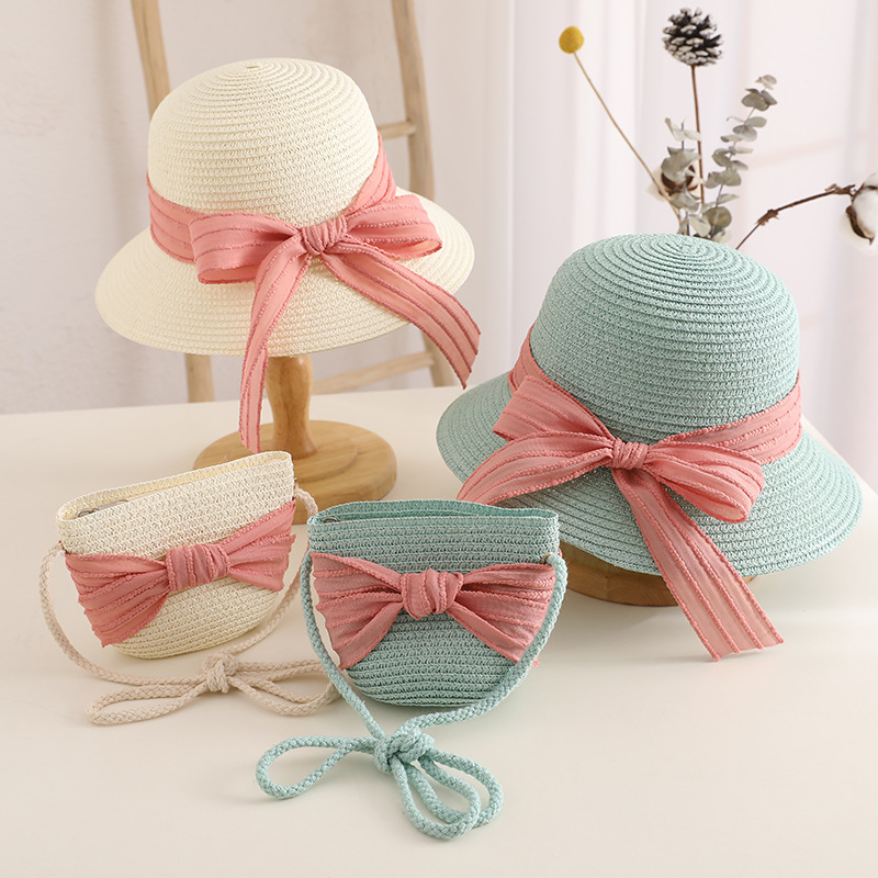春夏季款蝴蝶结儿童草帽出行防晒太阳帽旅游亲子遮阳帽子包包套装
