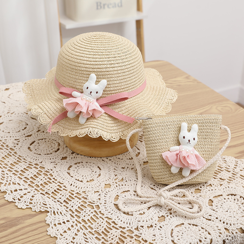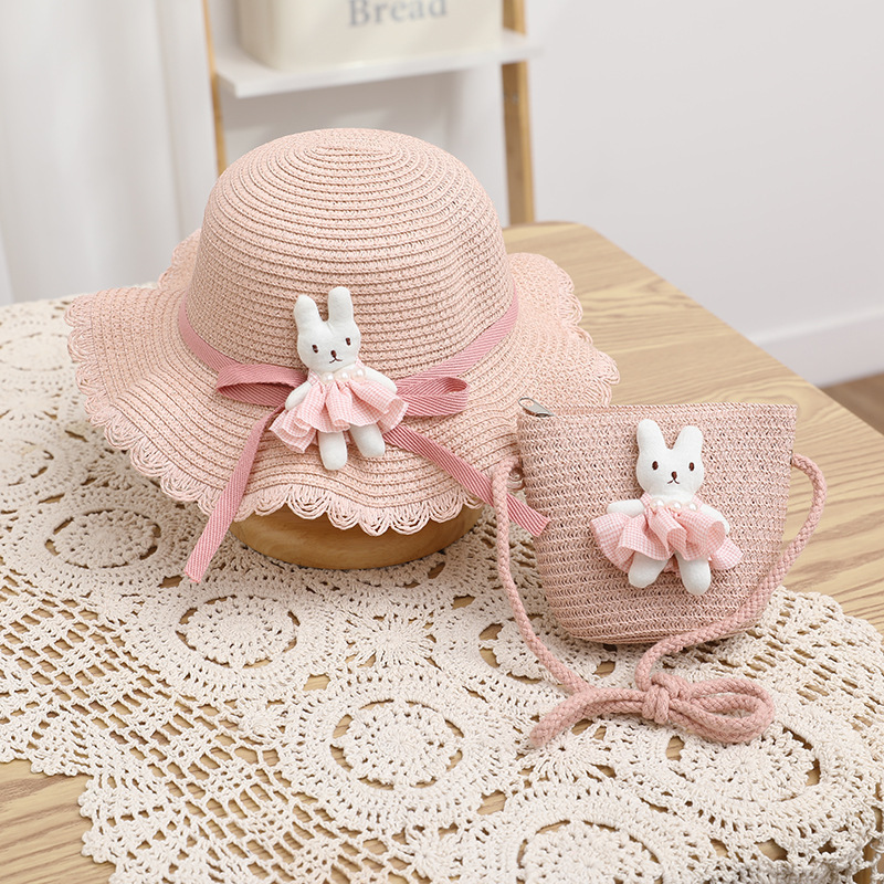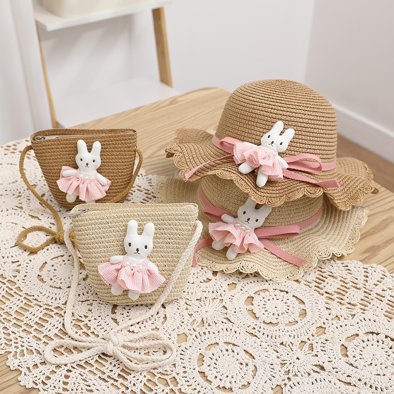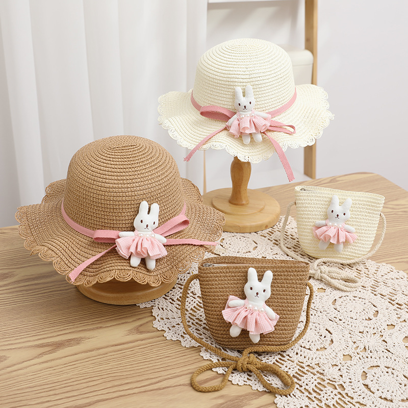 小清新包包亲子防晒太阳帽子女童夏沙滩帽波浪草帽遮阳帽儿童凉帽