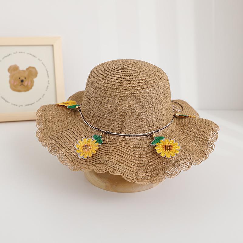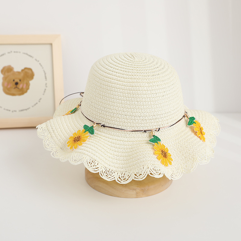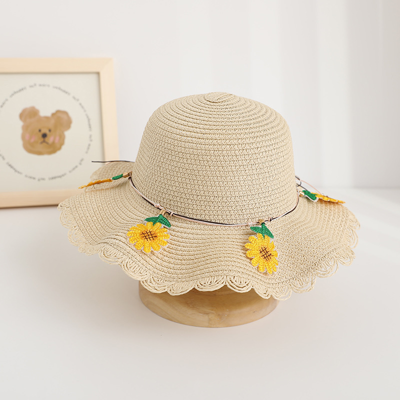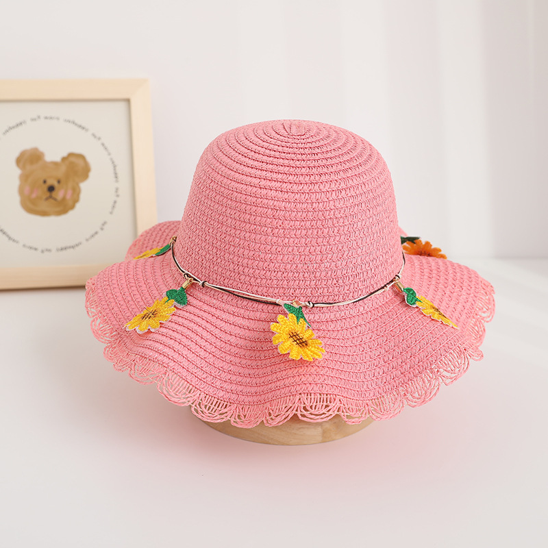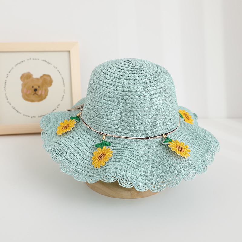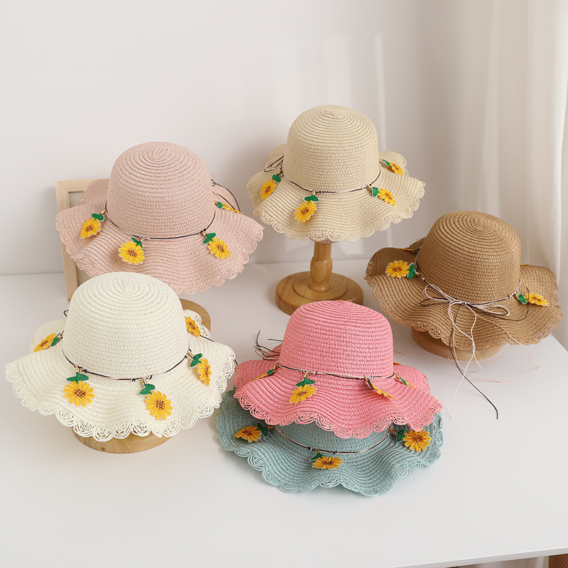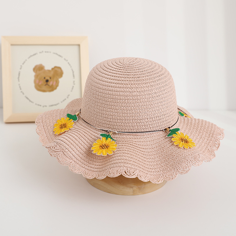 儿童遮阳帽子夏季女童出游草帽包包套装防晒沙滩帽宝宝太阳渔夫帽