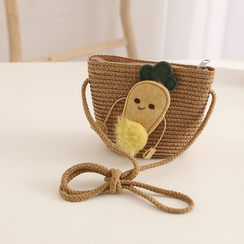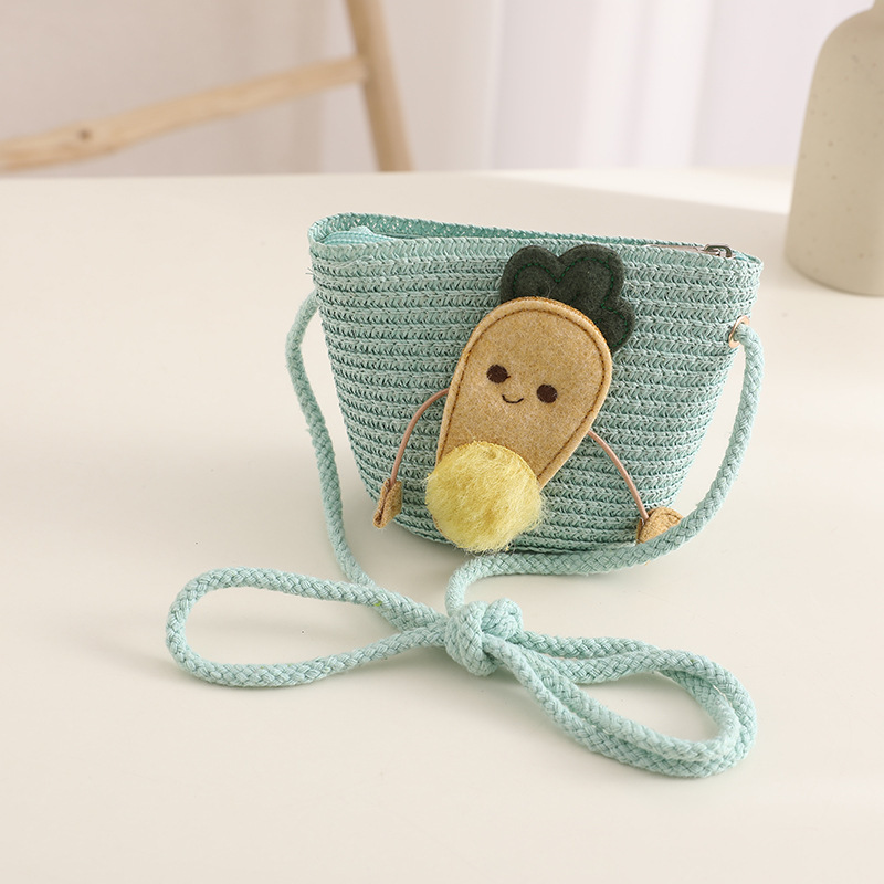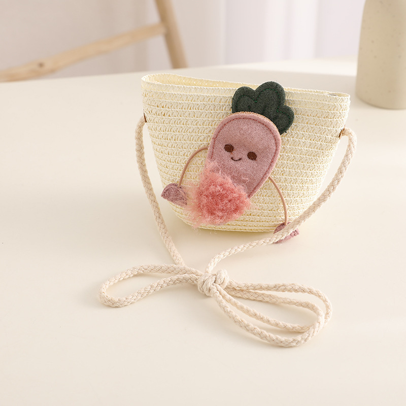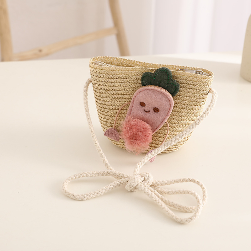 粉萝卜纯色儿童草帽编织凉帽时尚夏天遮阳出游沙滩帽子包包套装女