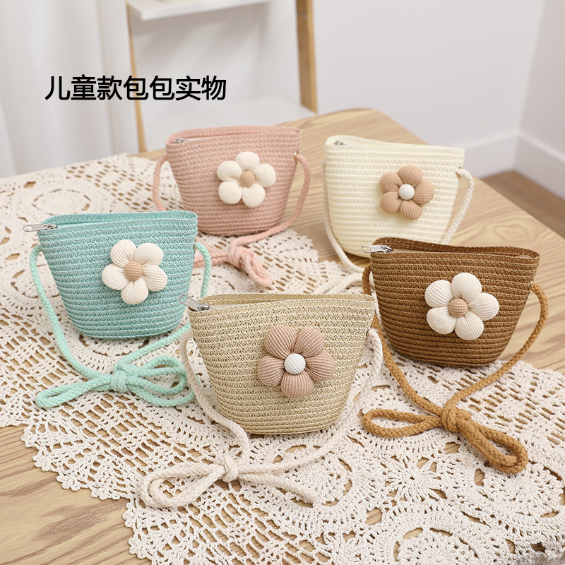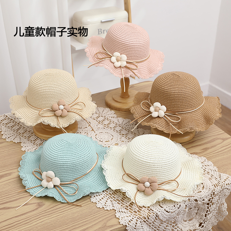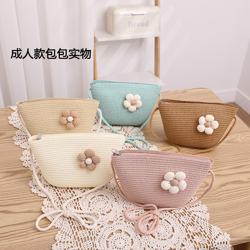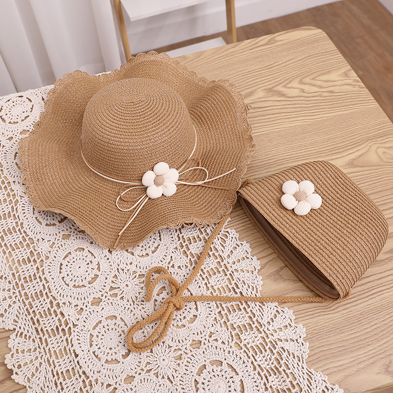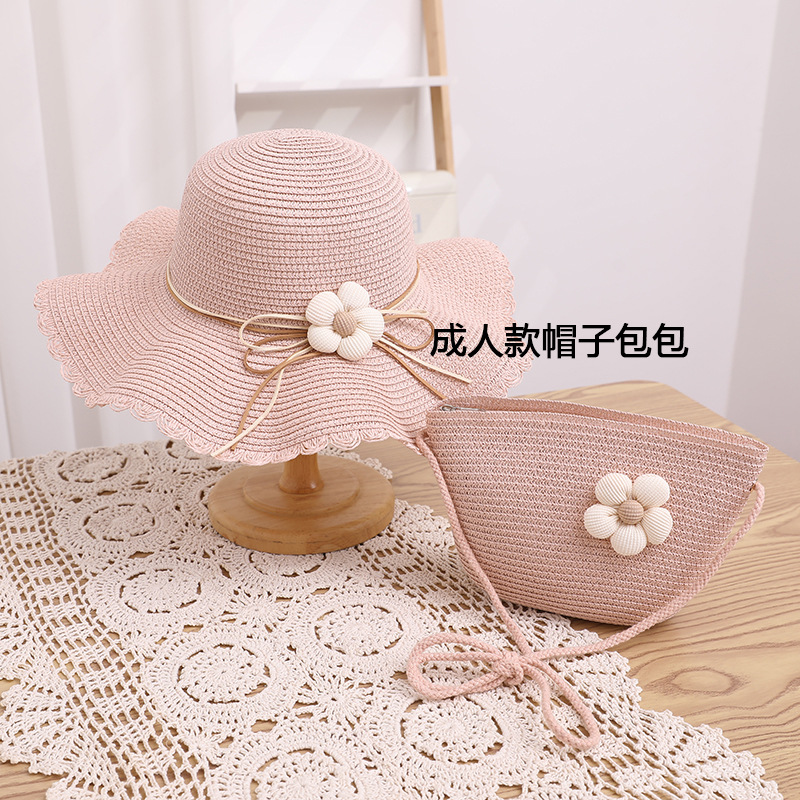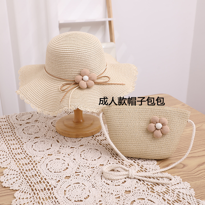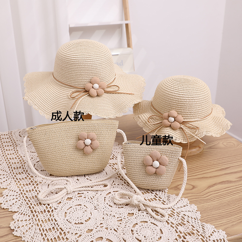 新款夏季亲子草帽包包套装儿童海边沙滩帽子女童小清新花朵遮阳帽
