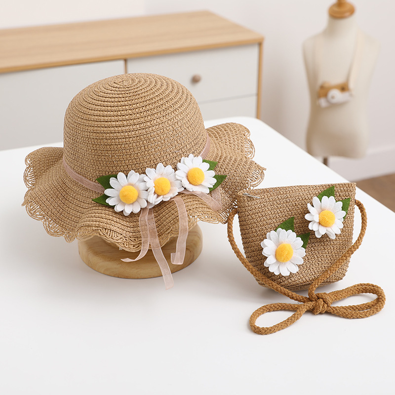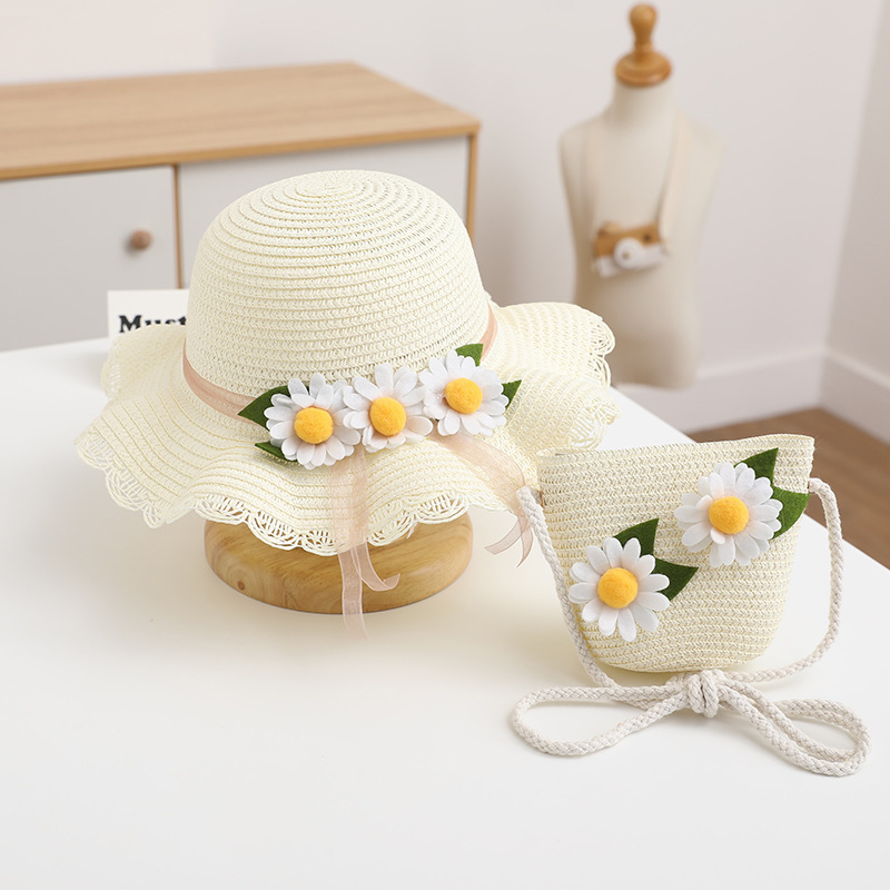 儿童遮阳帽包包女童太阳帽子夏季草帽渔夫帽公主沙滩夏天防晒宝宝