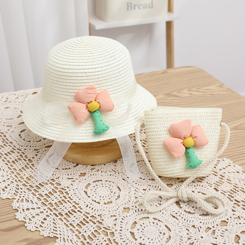 夏季新款亲子帽子包包套装儿童海边沙滩帽子女童小清新花朵遮阳帽