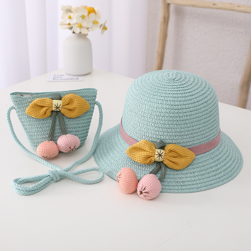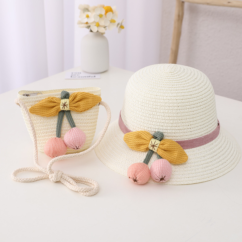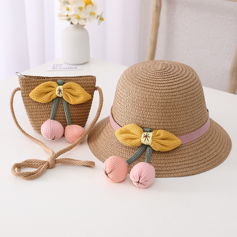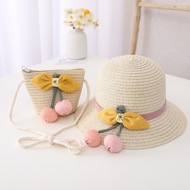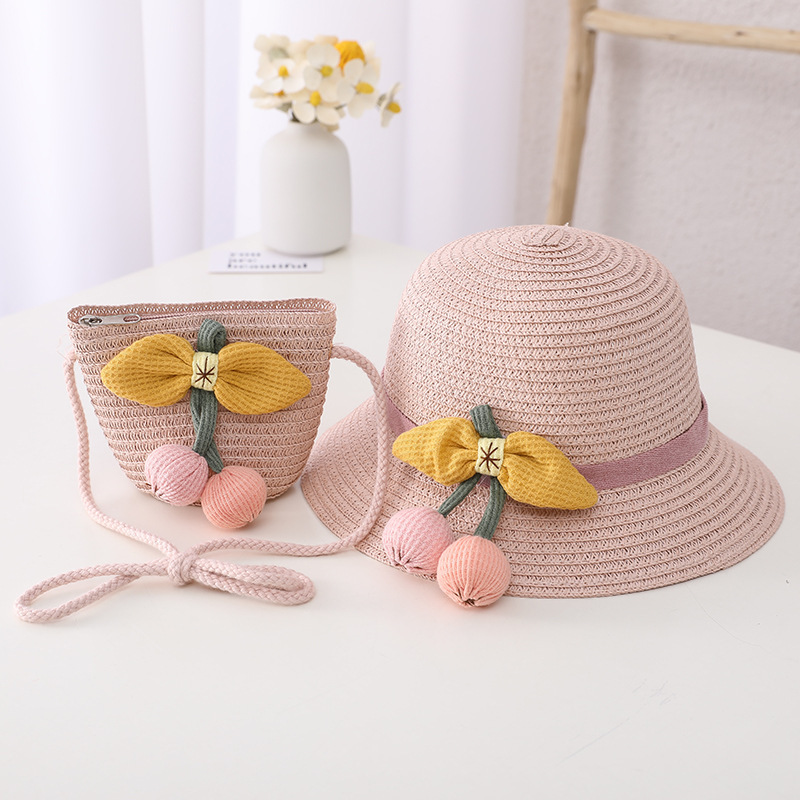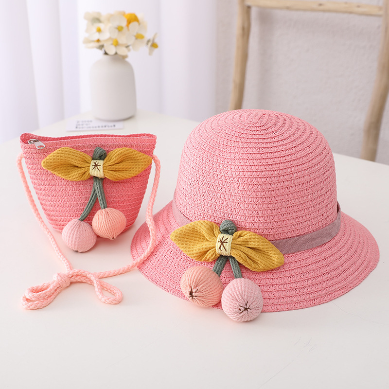 新款儿童遮阳帽女童草帽可爱公主帽夏季女宝宝太阳帽沙滩帽子包包