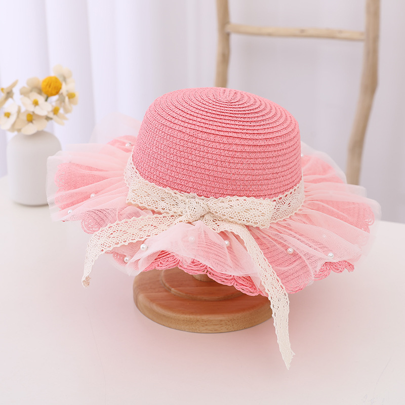 新款儿童遮阳帽亲子草帽可爱公主帽夏季女宝宝太阳帽沙滩帽子包包