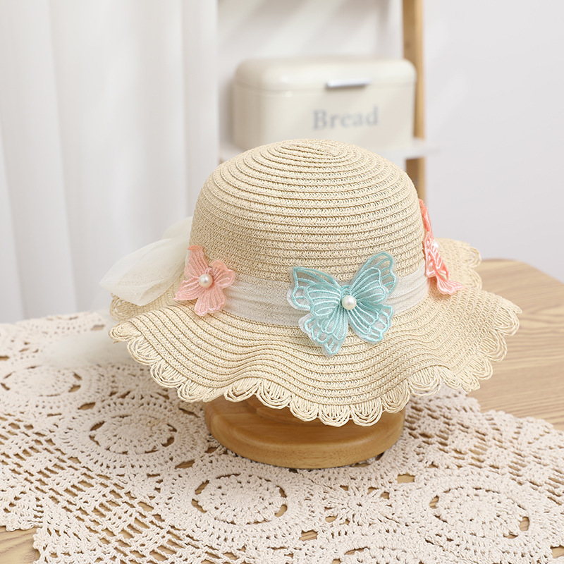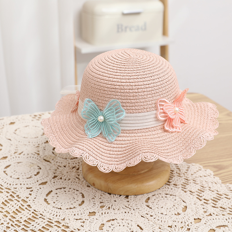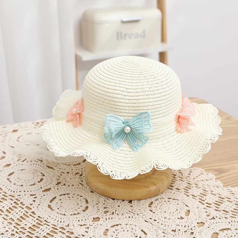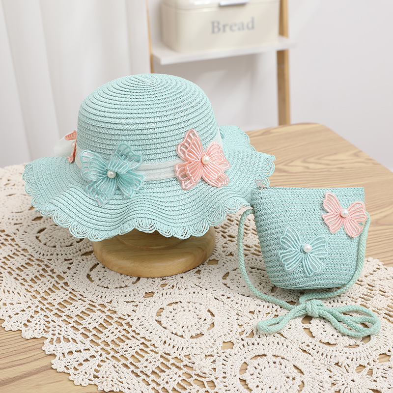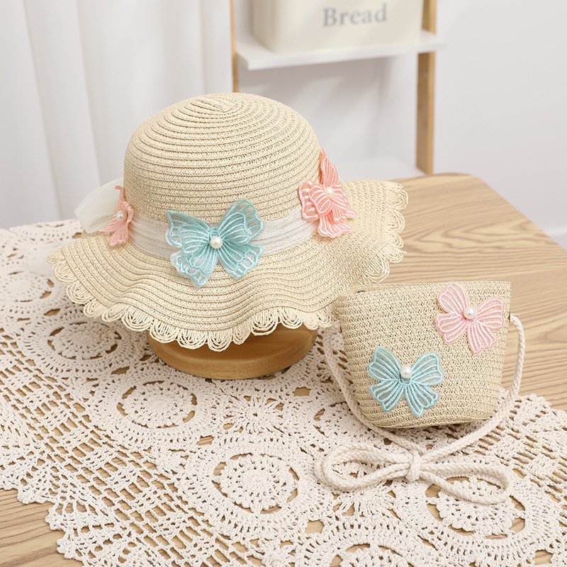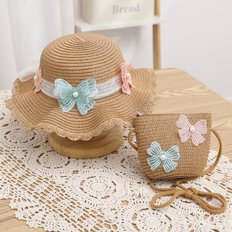 帽子儿童夏季新款草帽包包两件套蝴蝶结花朵系绳沙滩帽亲子款帽子