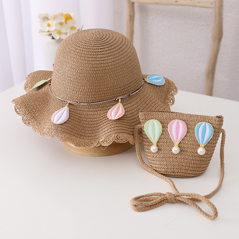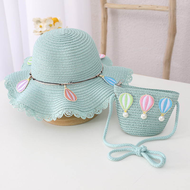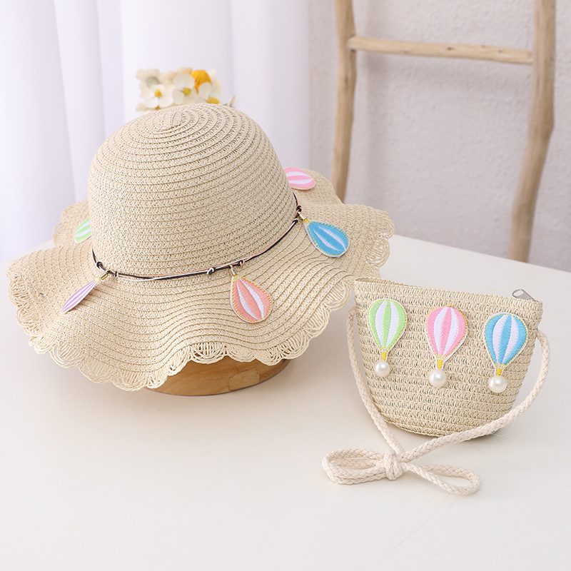 夏季新款儿童草帽包包套装女孩海边沙滩帽子女童小清新气球遮阳帽