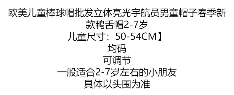 欧美儿童棒球帽批发立体亮光宇航员男童帽子春季新款鸭舌帽2-7岁