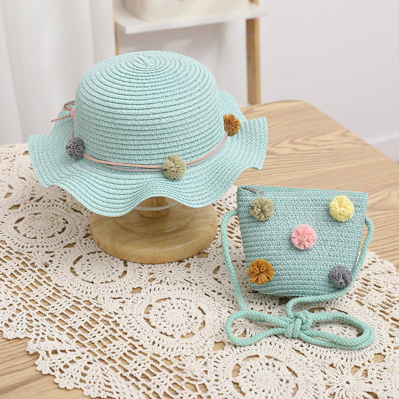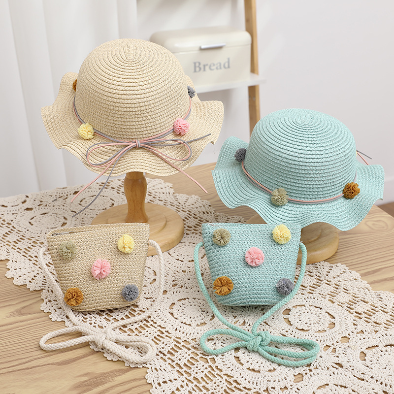 遮阳帽女童新款帽子包包套装防晒太阳帽夏天儿童公主可爱亲子草帽
