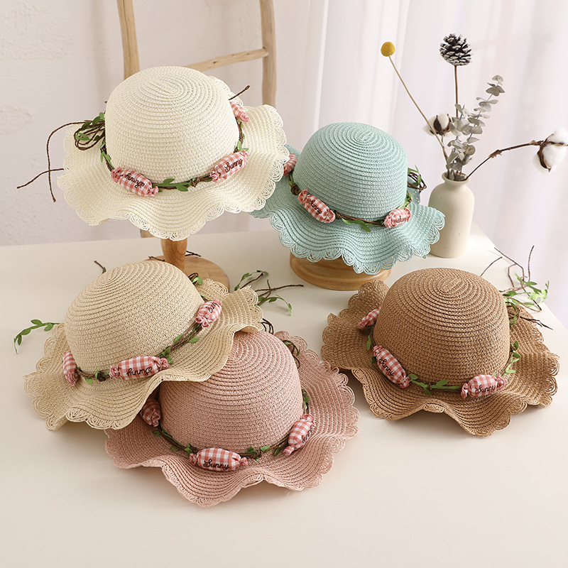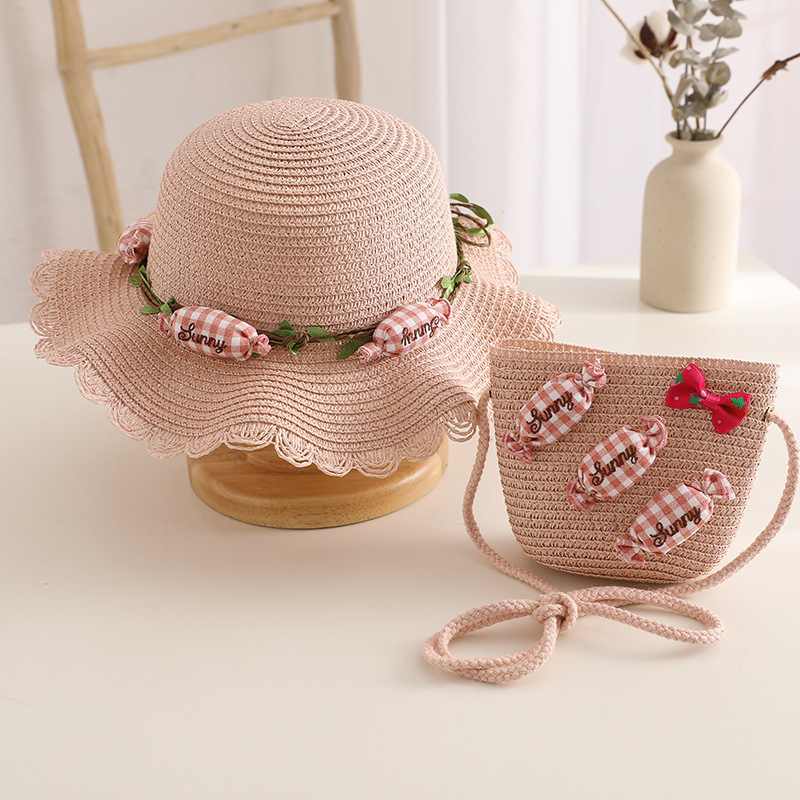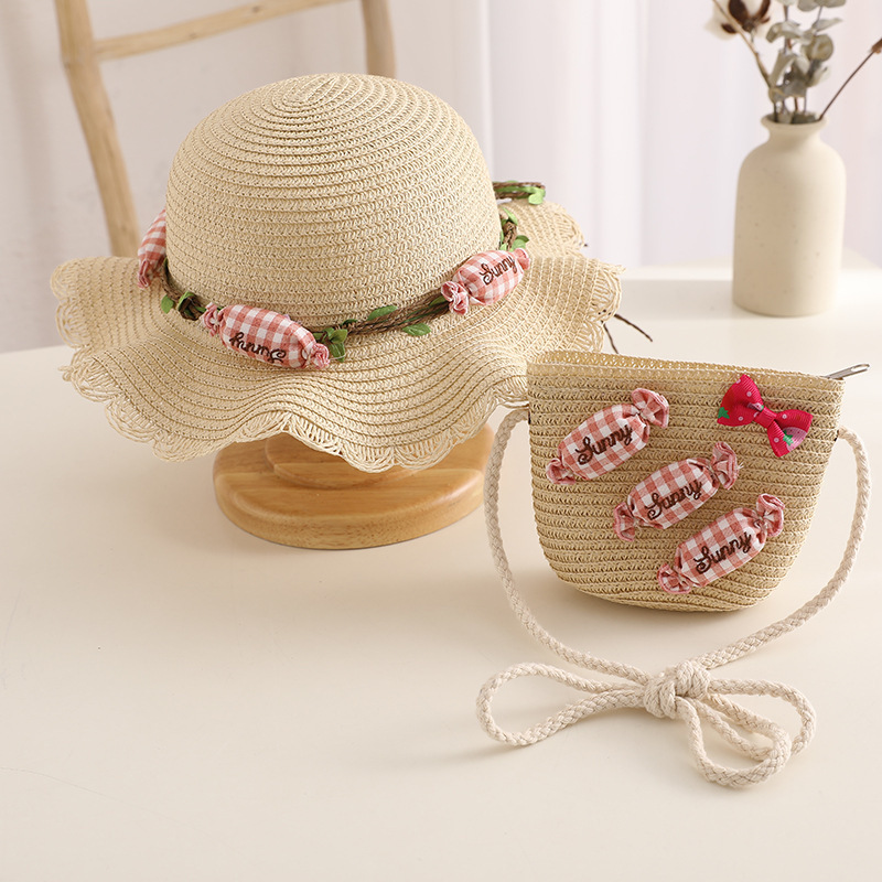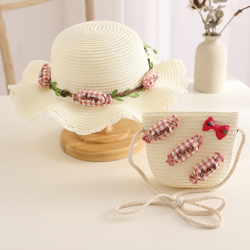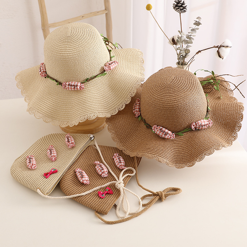夏季成人小清新花环糖果太阳帽儿童草帽包包套装宝宝透气遮阳凉帽