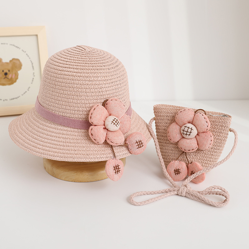 遮阳帽夏季女童新款草帽宝宝凉帽防晒沙滩帽可爱花朵包包太阳帽潮