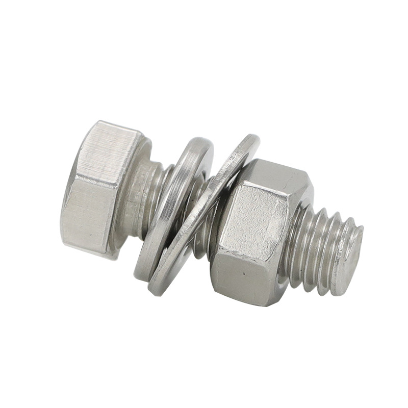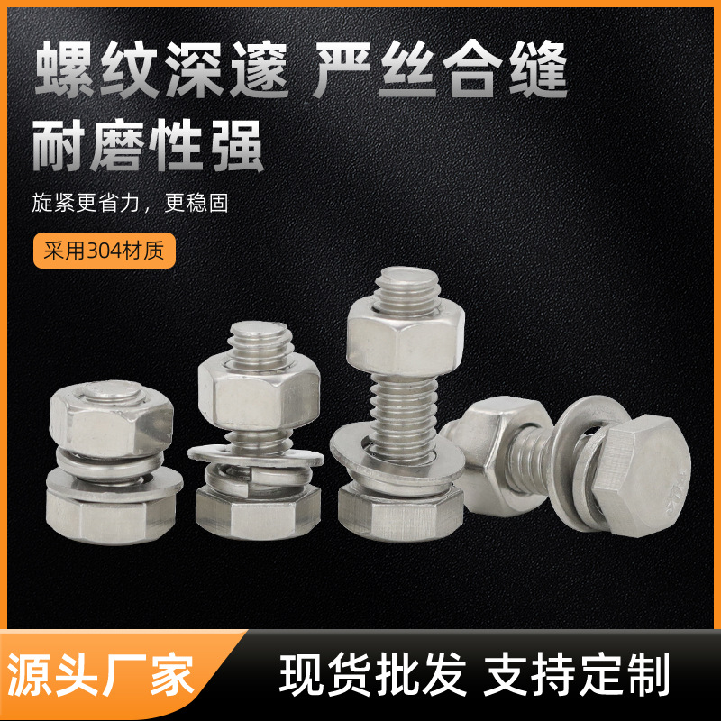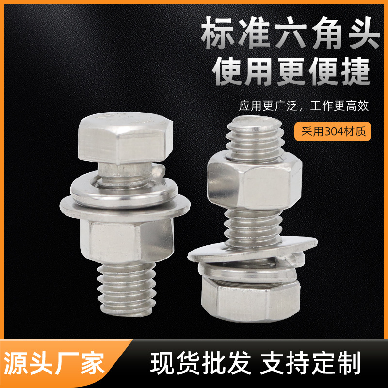 304不锈钢外六角螺丝组合套装平垫弹垫螺母DIN933全螺纹六角螺栓