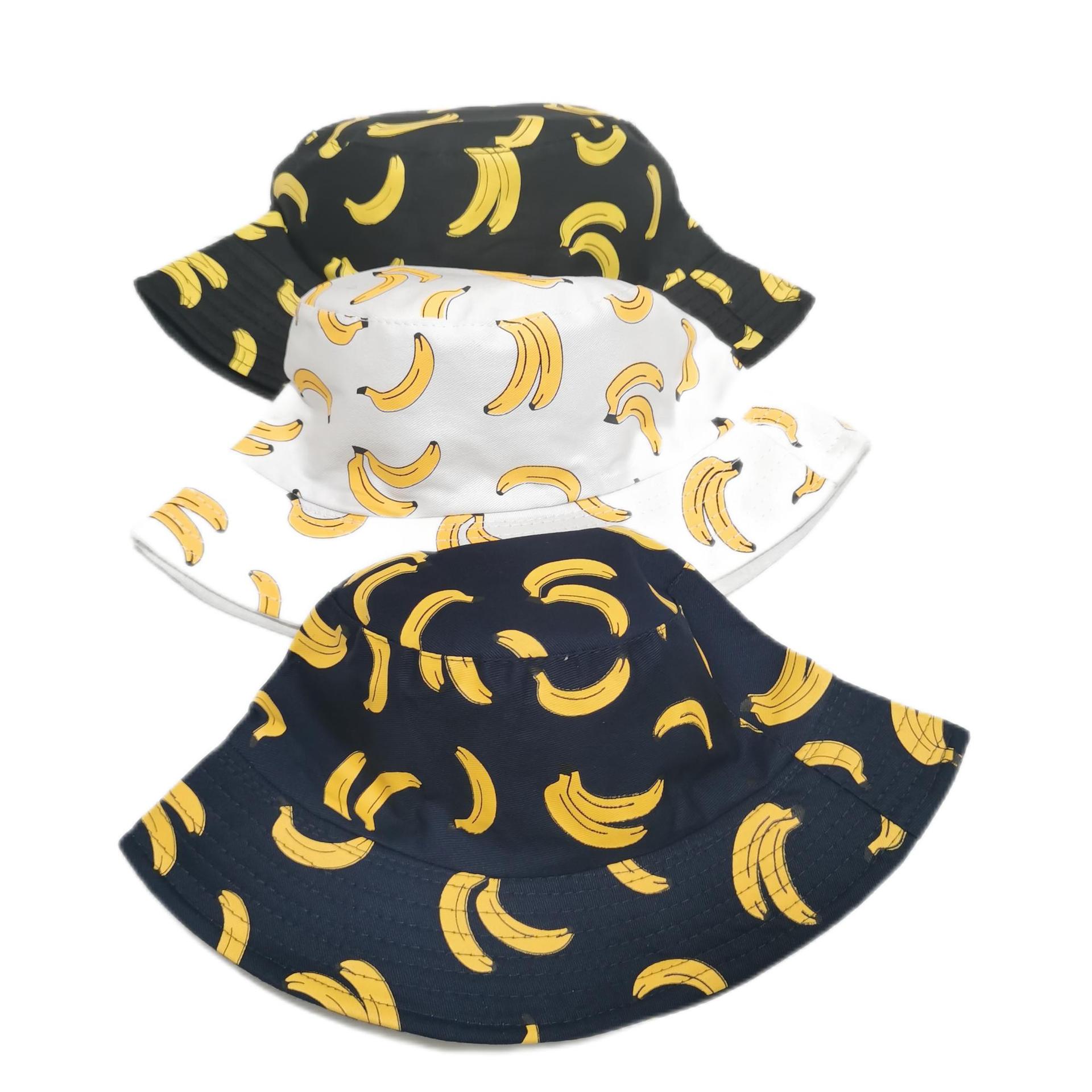 新款跨境渔夫帽水果印花双面渔夫帽子菠萝盆帽时尚户外款大檐帽子