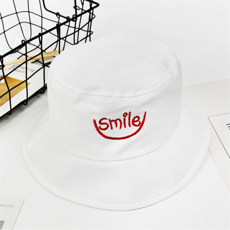 夏天韩版双面戴笑脸图案大沿渔夫帽女拼色遮阳帽女防晒盆帽子潮春