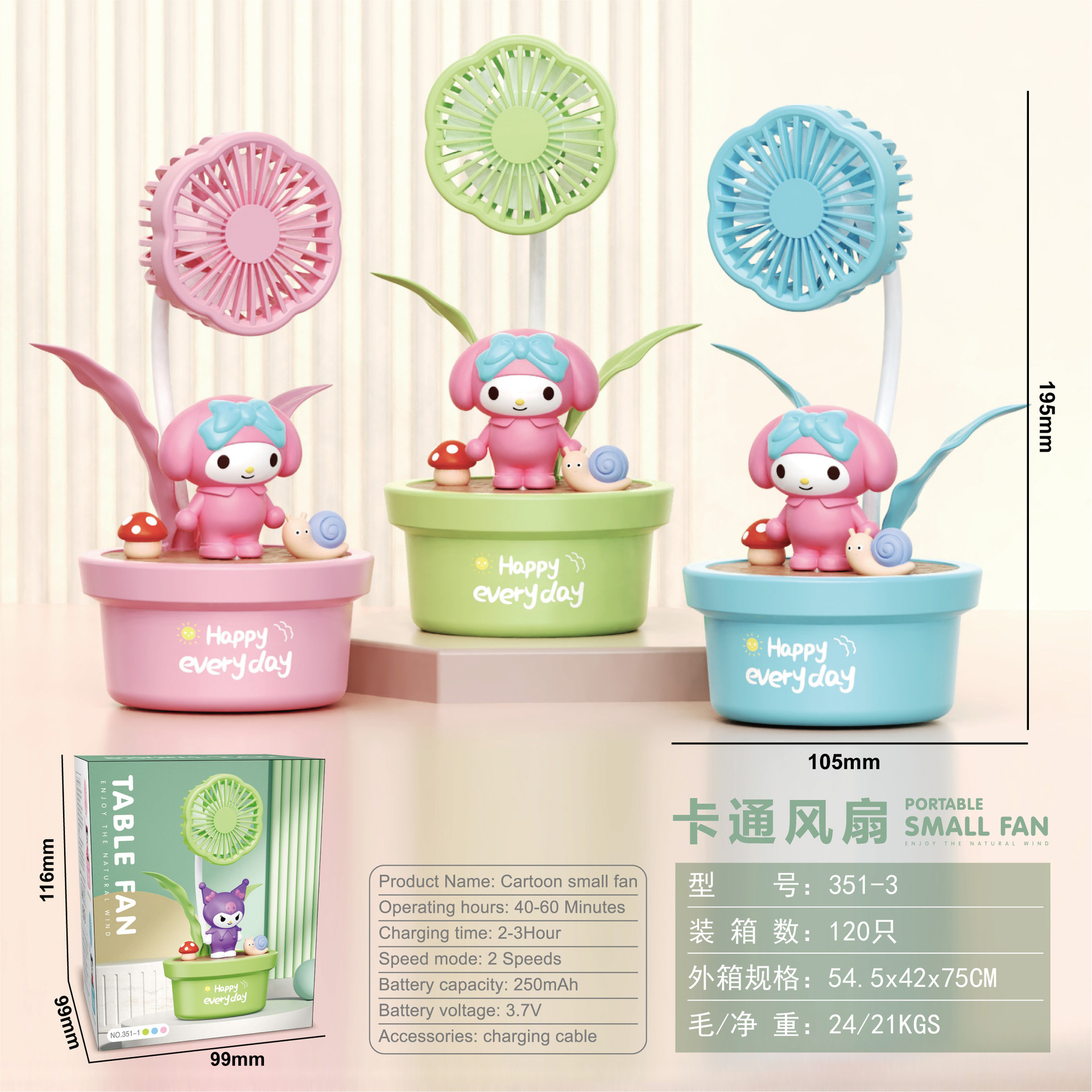 2025新款创意USB充电超长续航学生迷你桌面卡通可爱花盆小风扇