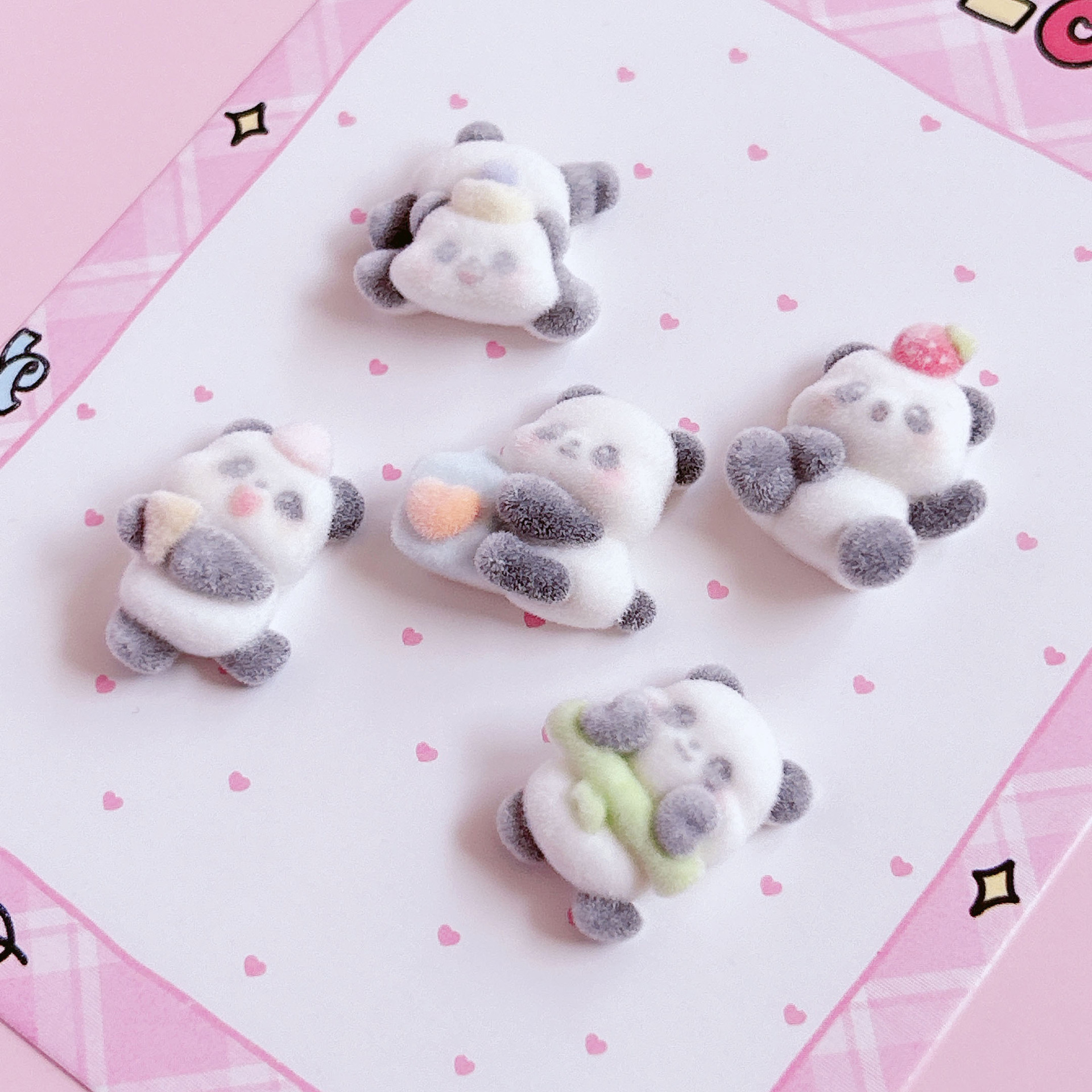 XN植绒想念可爱熊猫配件 diy挂件手作毛绒发夹秋冬装饰贴片材料