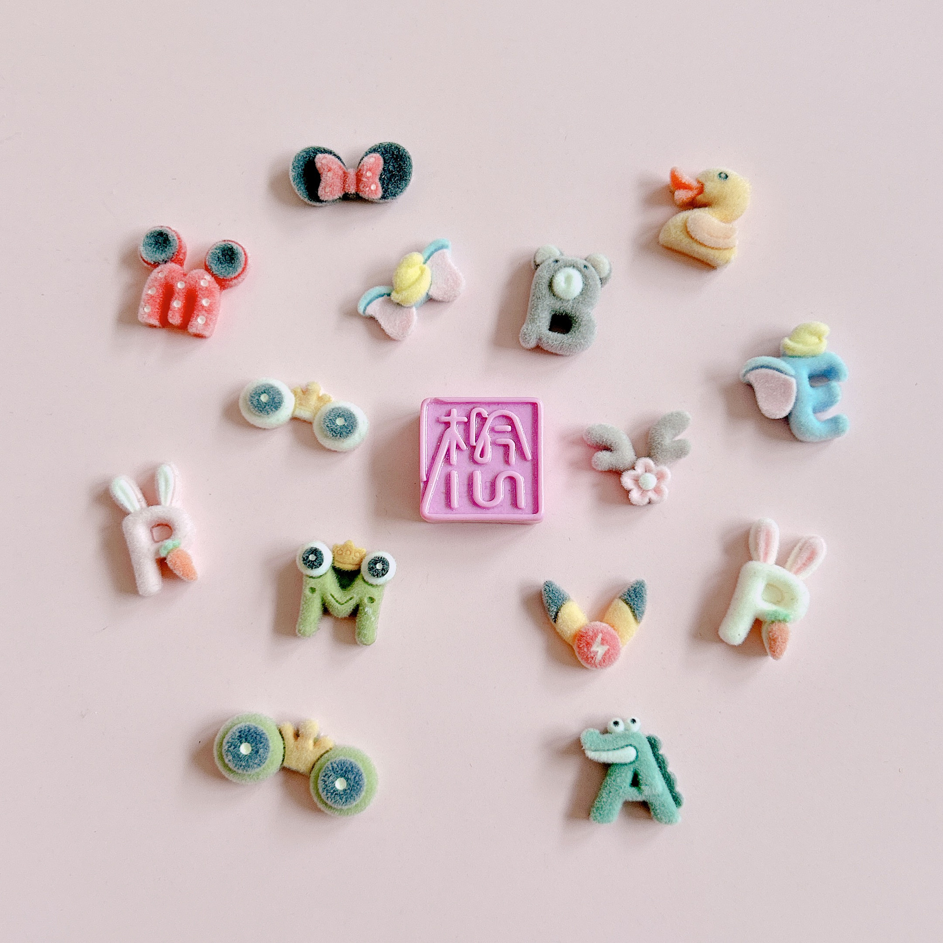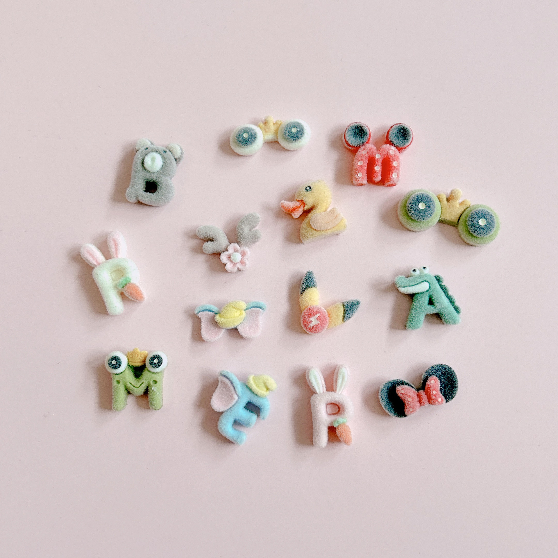 植绒想念配件diy毛绒耳朵字母卡通动物diy树脂饰品配件秋冬材料贴