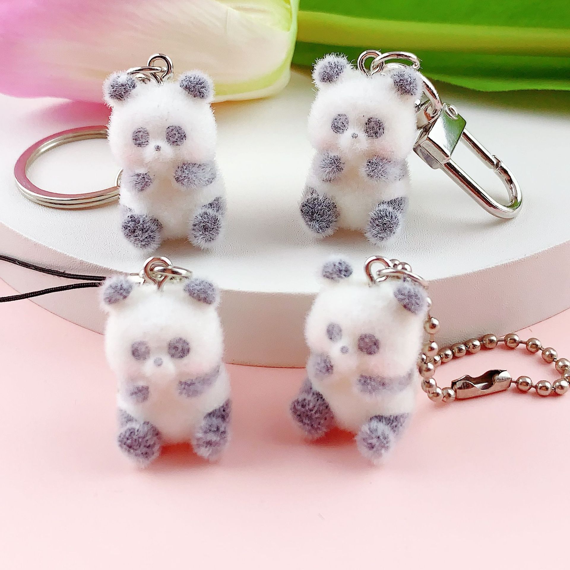 树脂植绒立体卡通坐姿熊猫钥匙扣手机挂饰 DIY饰品挂件材料配件