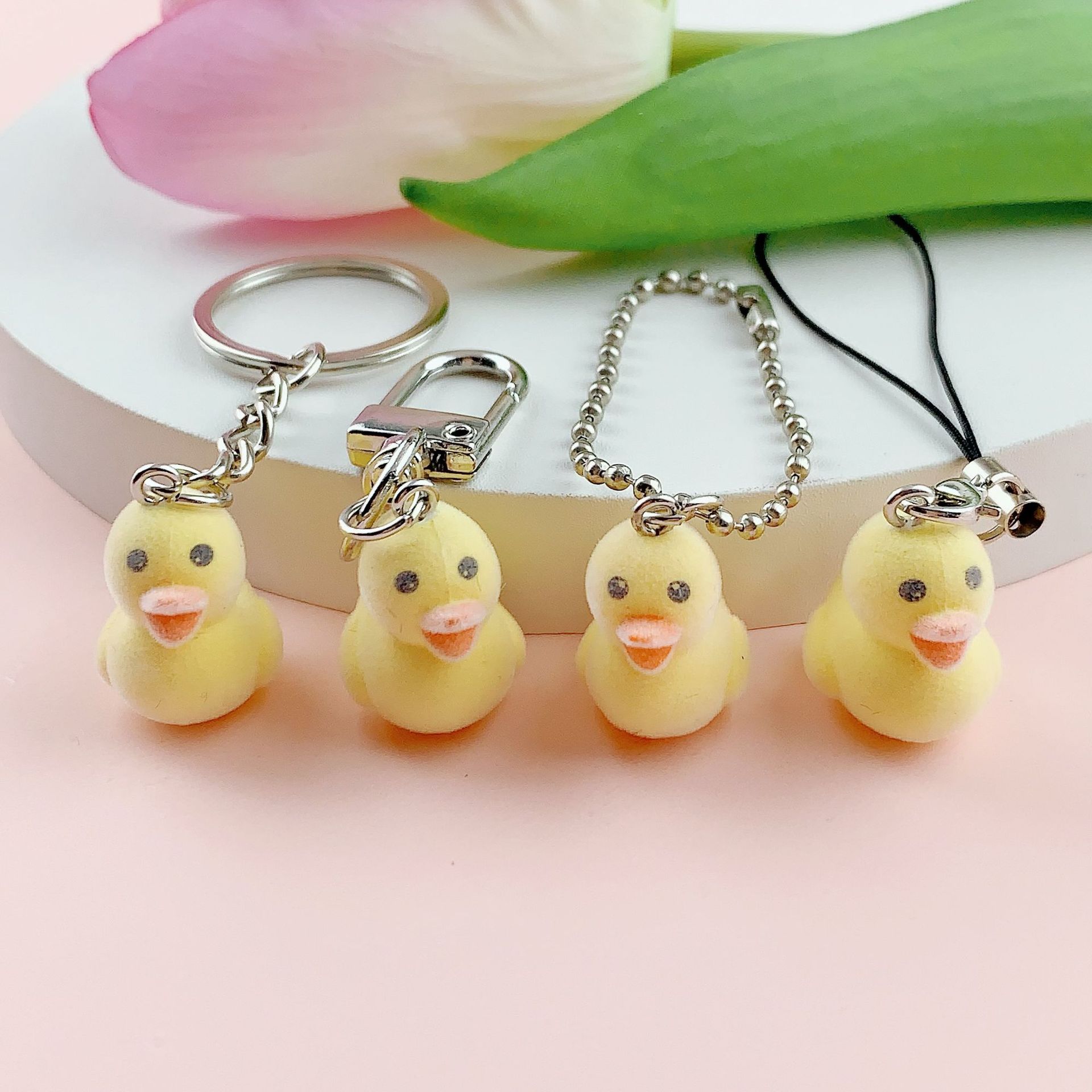树脂植绒立体卡通可爱小黄鸭钥匙扣手机挂饰 DIY饰品挂件材料配件