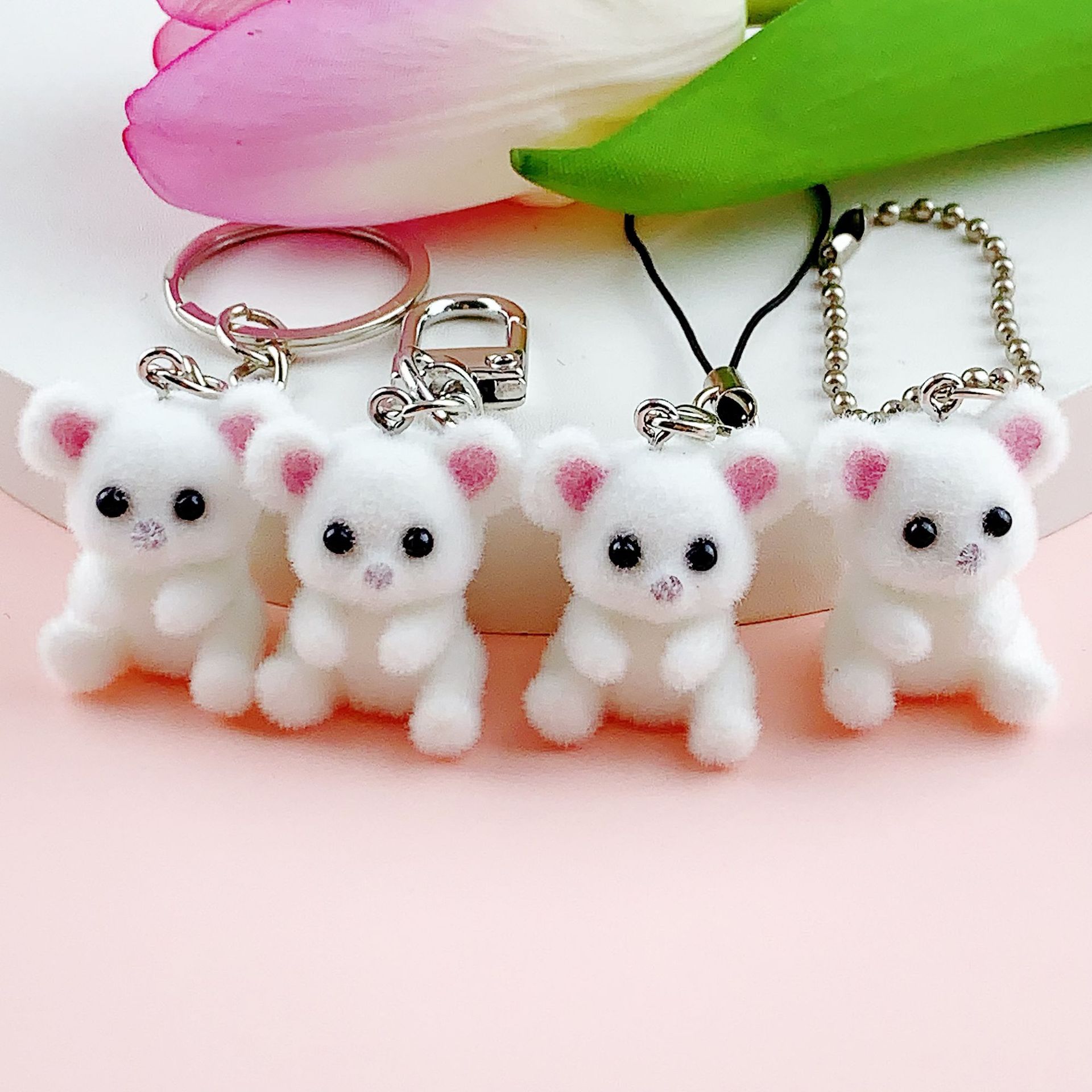 可爱卡通树脂植绒立体坐姿小熊钥匙扣吊坠卡通包包挂件汽车钥匙链