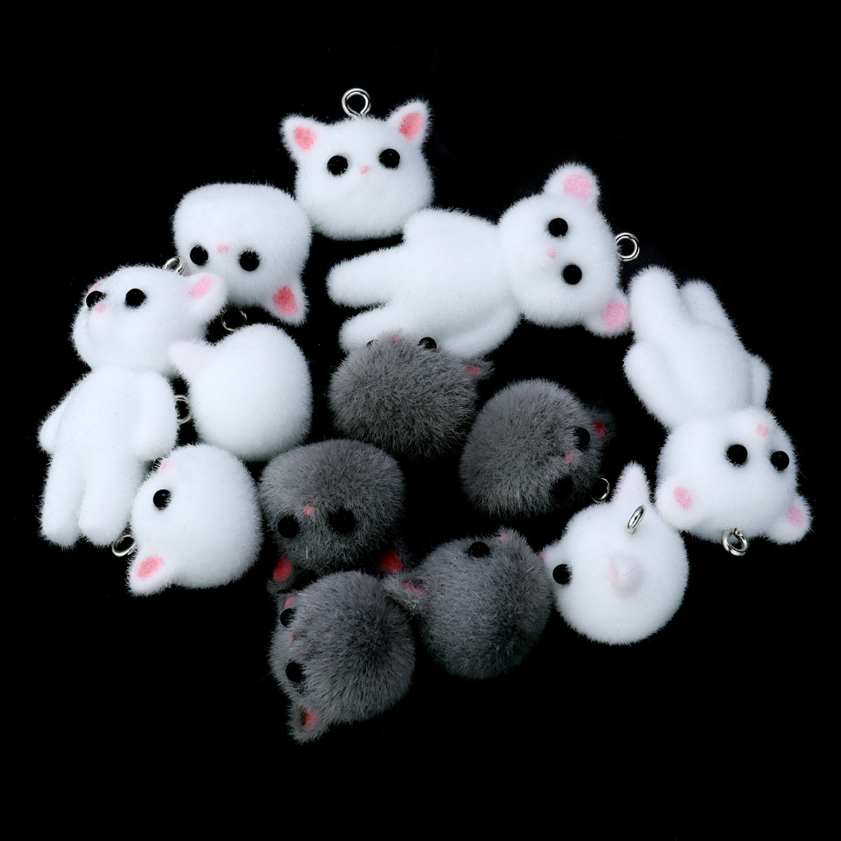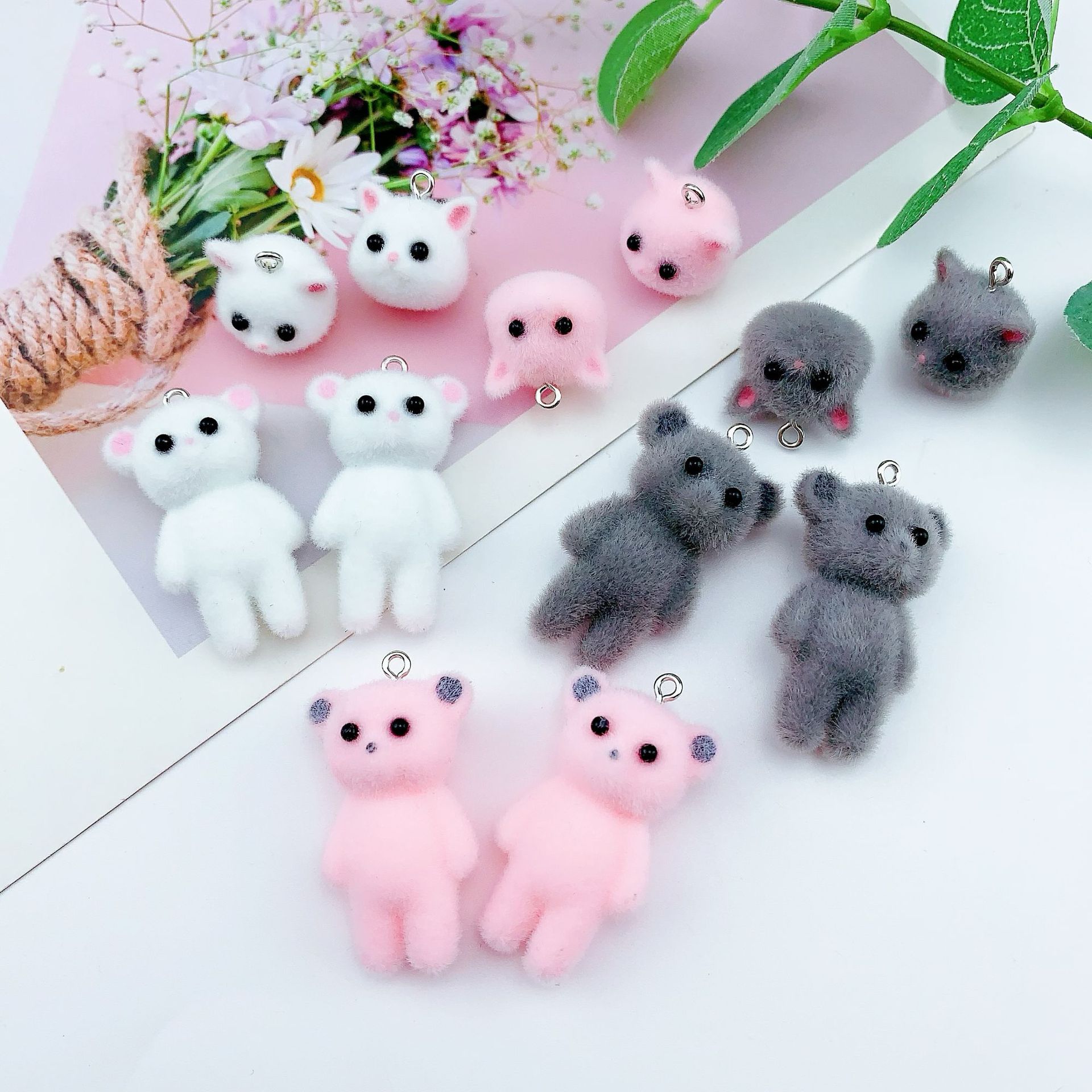 树脂植绒可爱立体猫咪小熊挂件 DIY耳环包挂钥匙扣饰品挂件材料