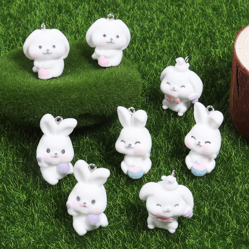 新品 树脂植绒立体卡通可爱兔子 DIY手工饰品挂件配件材料