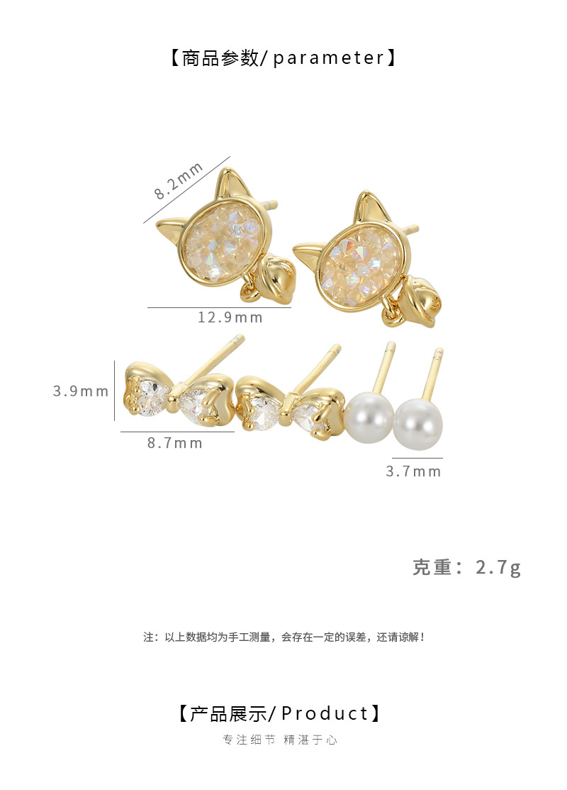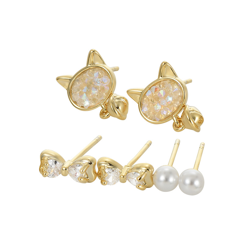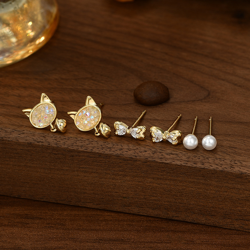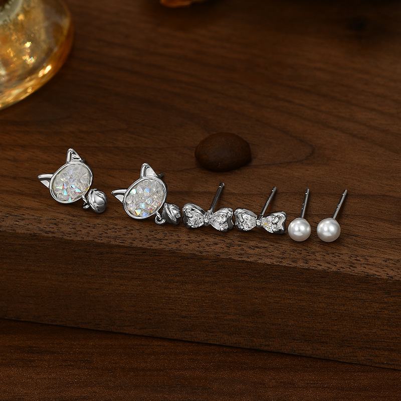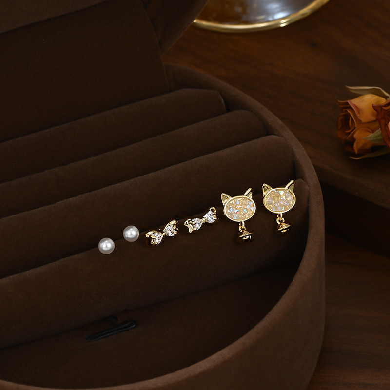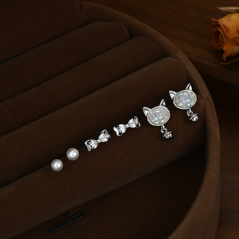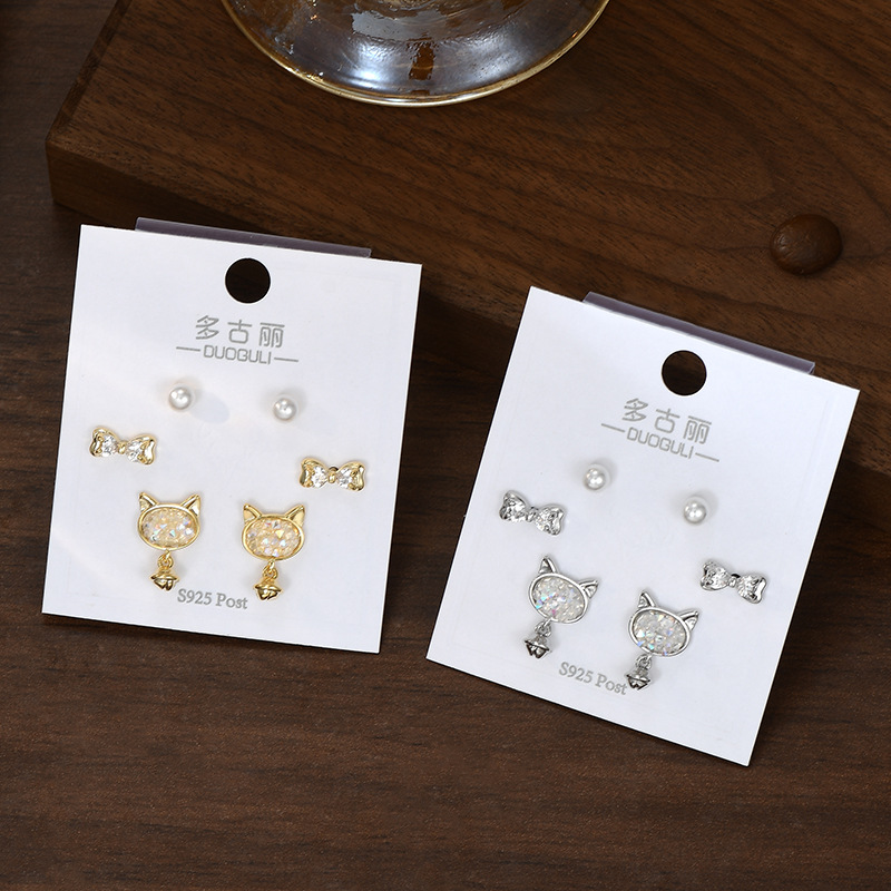 养耳蝴蝶结珍珠耳饰精致学生耳坠银针一卡三对套装耳钉女批发