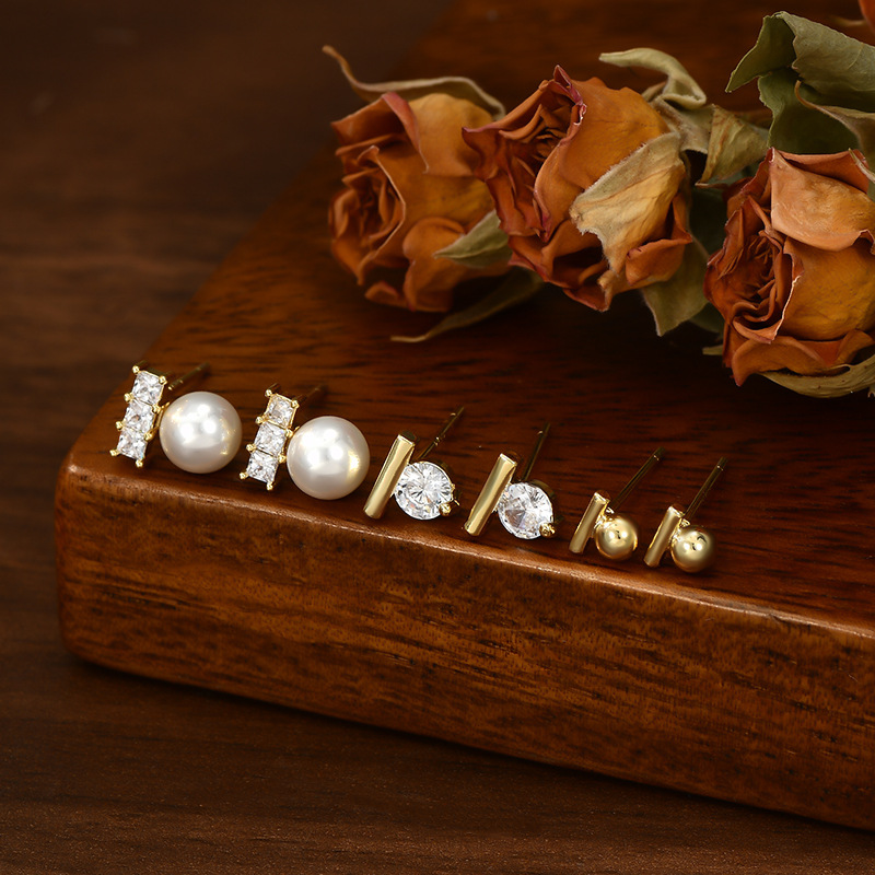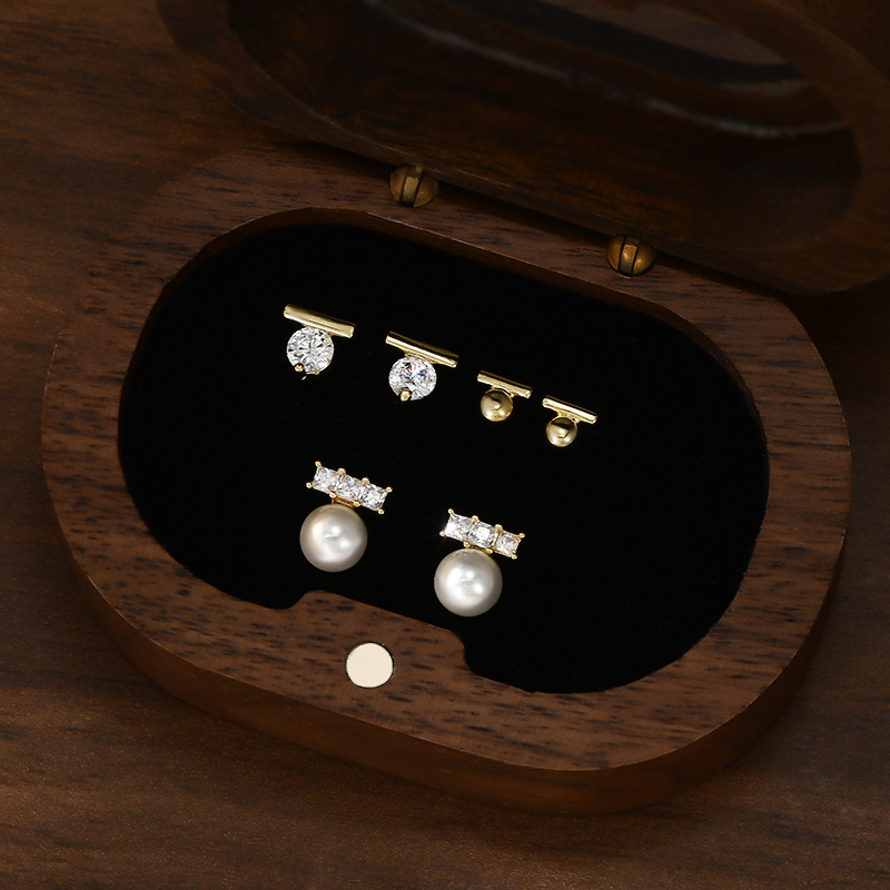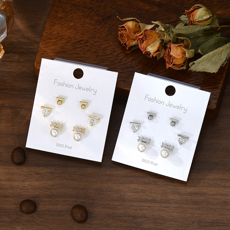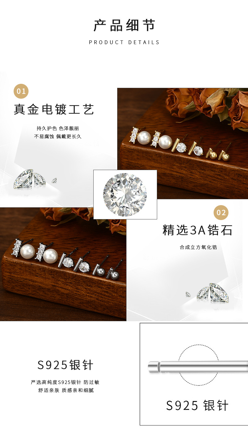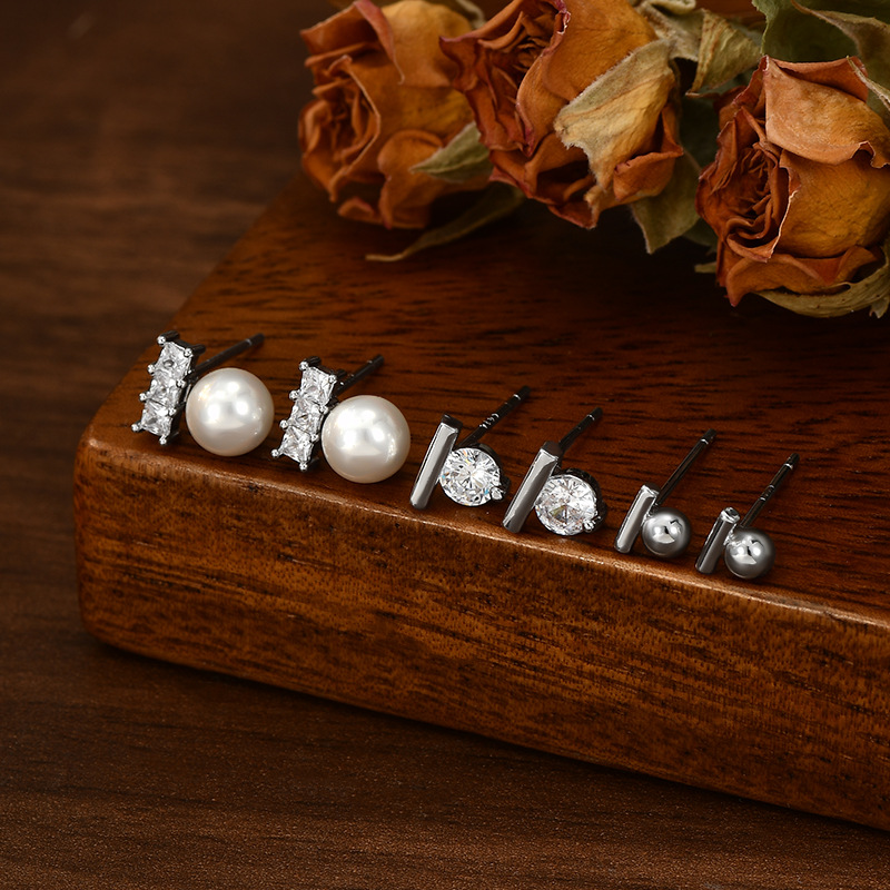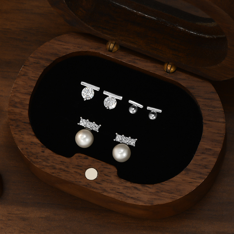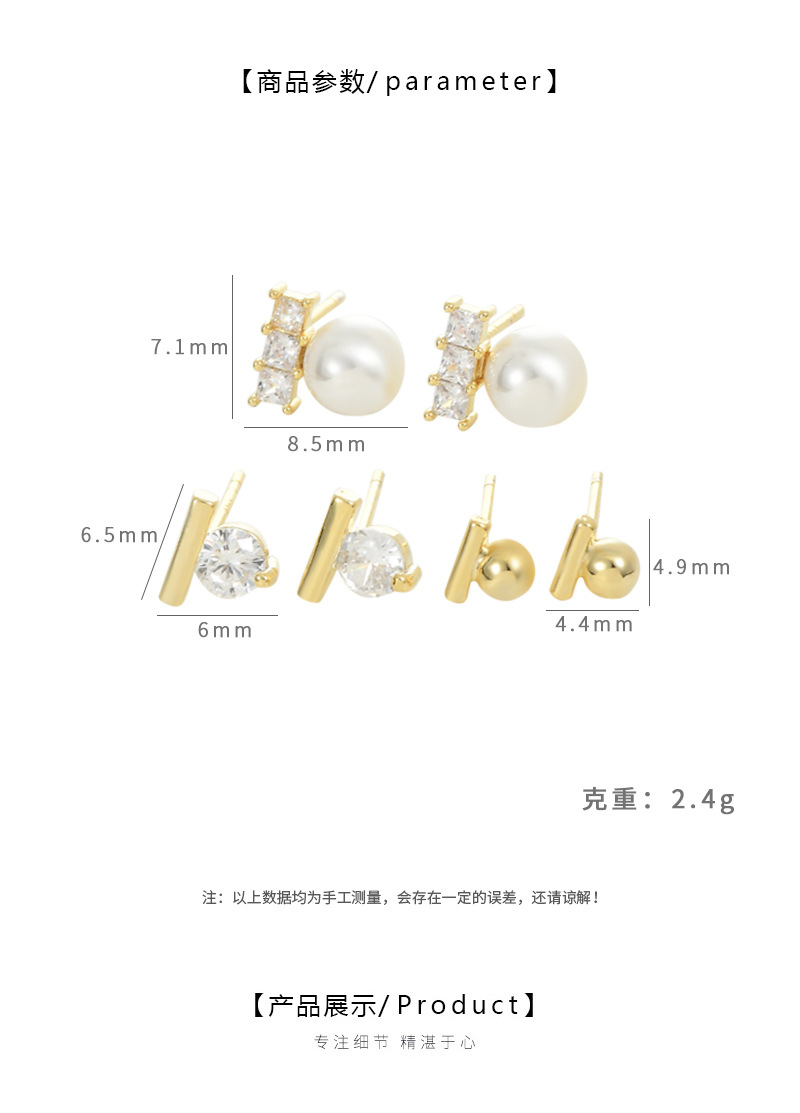 耳扣睡觉不用摘养耳一字珍珠耳钉学生耳坠银针一卡三对套装耳钉女