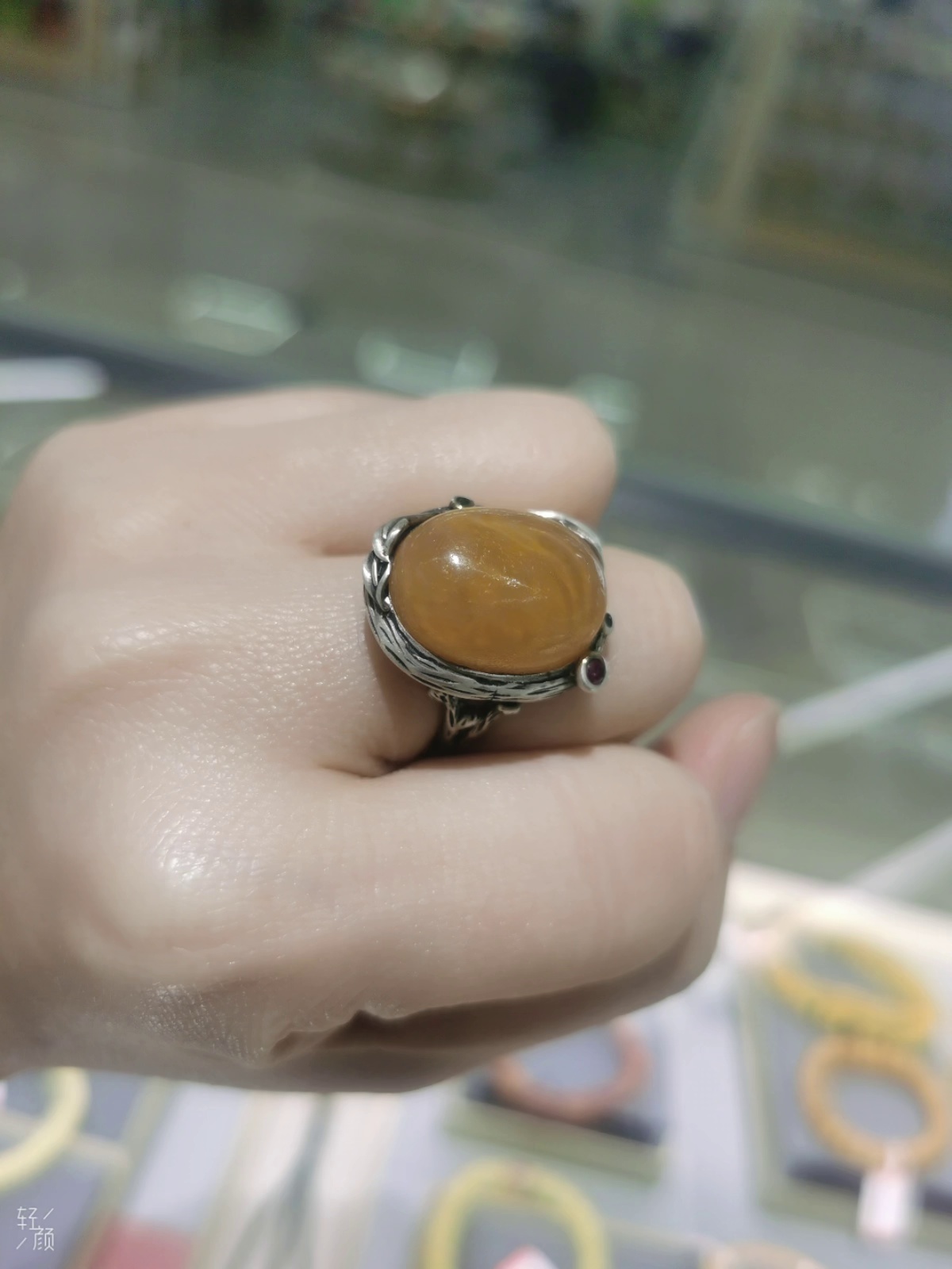 俄罗斯天然蜜蜡戒指,复古风格独特,漂亮