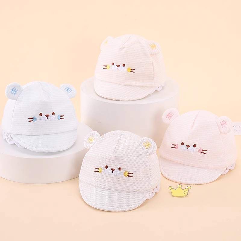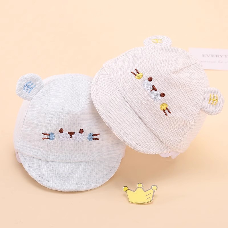 0-3个月春季新款新生儿帽子条纹小老虎棉布宝宝胎帽 护卤门婴儿帽