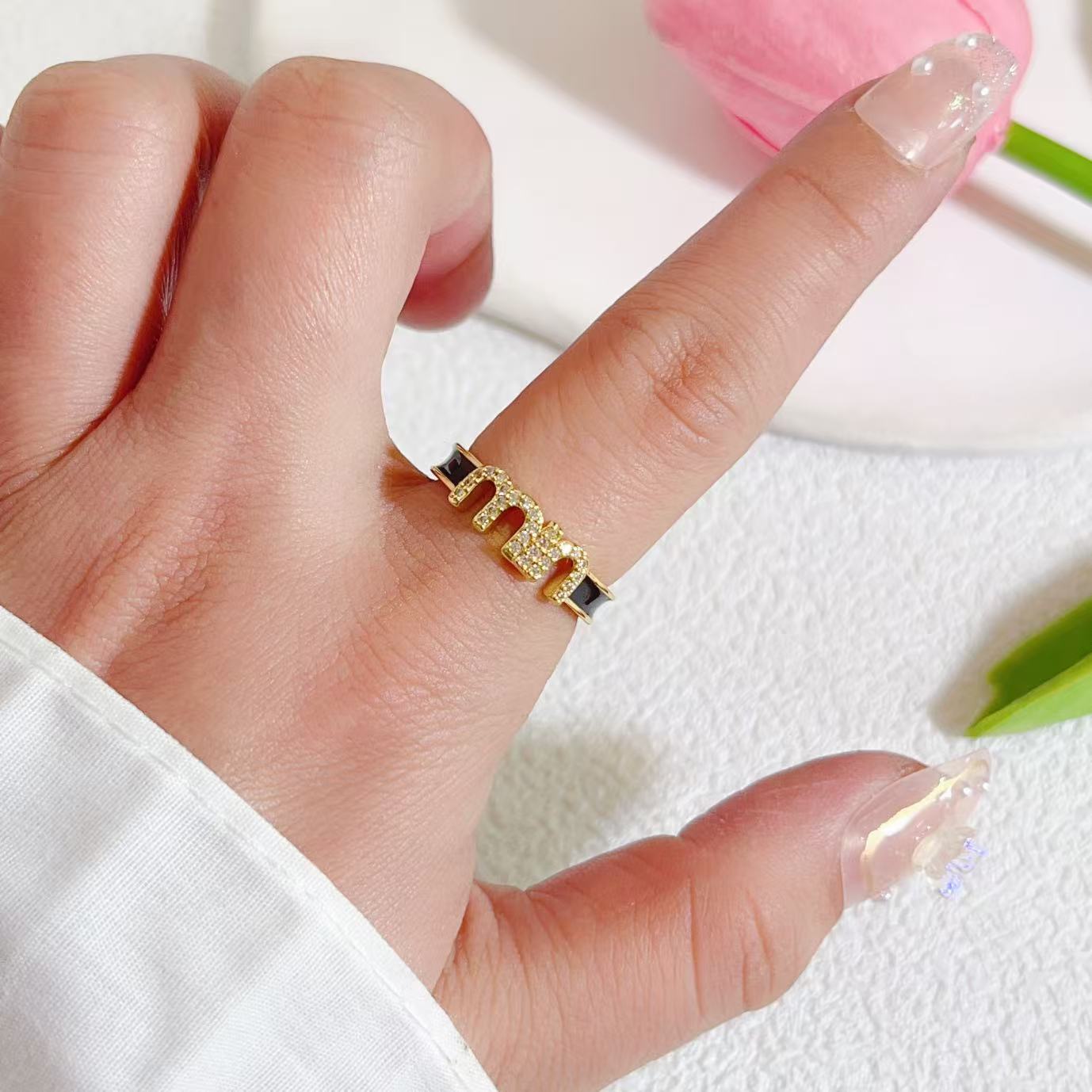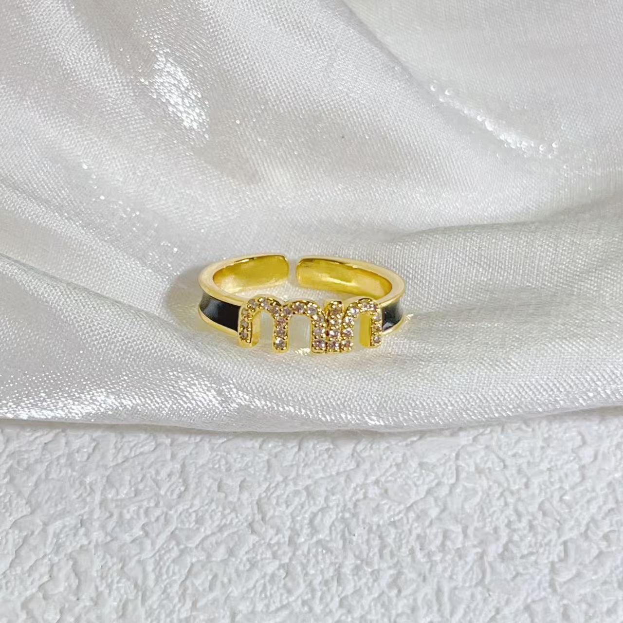 黑色滴釉镶钻开口食指戒女轻奢高级感戒指女小众设计轻奢复古戒指