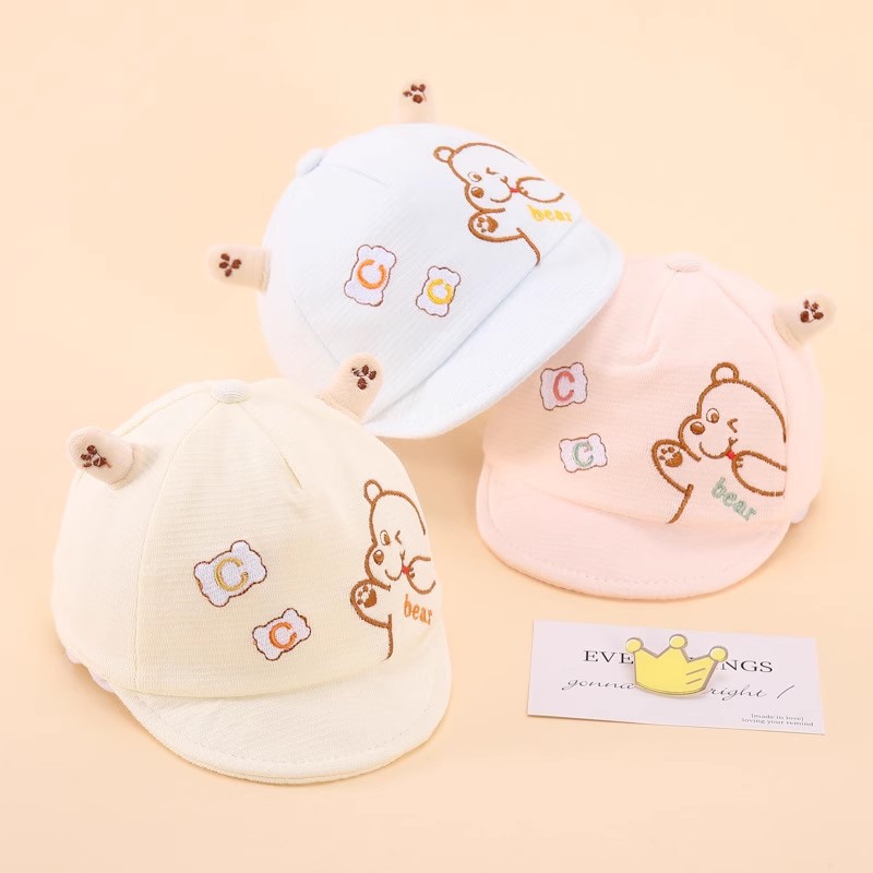 0-6个月春季新款婴儿帽子CC小熊宝宝鸭舌帽 可爱防晒遮阳帽