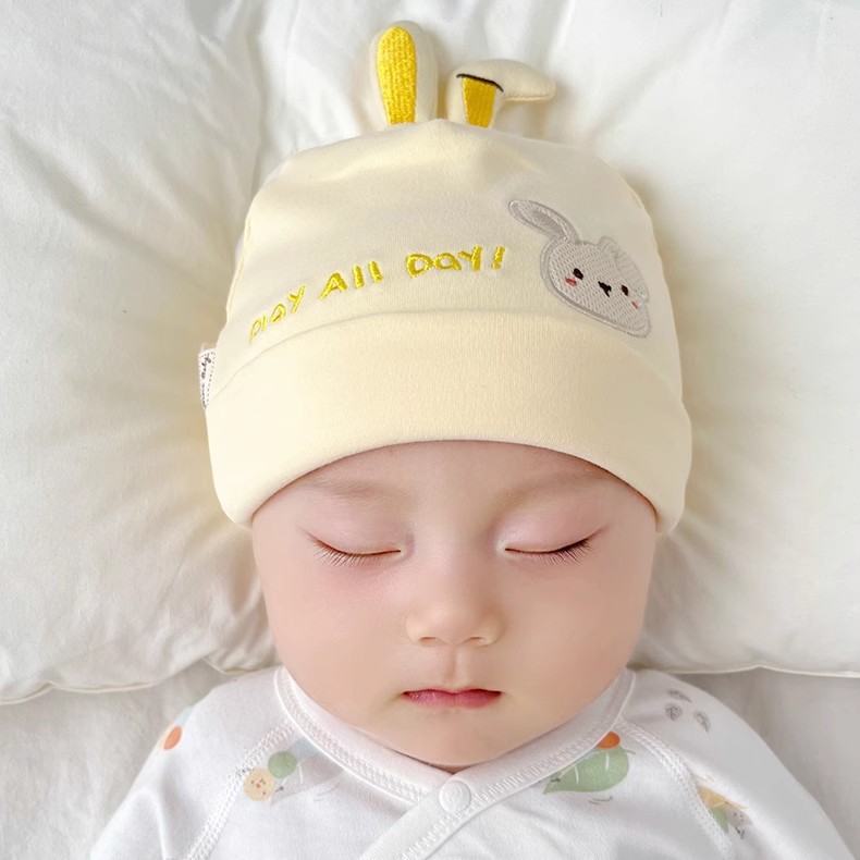 婴儿帽子秋冬款0一3个月胎帽纯棉春秋小兔子新生儿初生男女宝宝帽