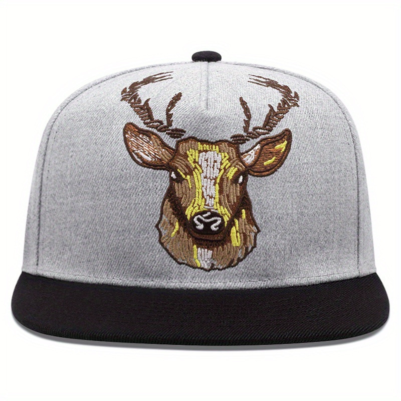 跨境电商男女平沿帽街头刺绣印花鹿头嘻哈帽
