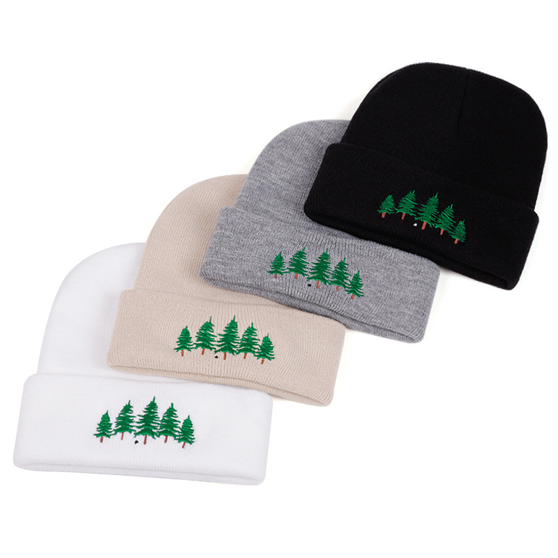 棒球秋冬季保暖松树刺绣套头帽刺绣针织帽套头帽嘻哈毛线帽子多款