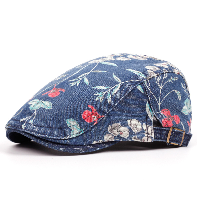 新款外贸批发时尚个性街头嘻哈印花水洗牛仔贝雷帽春秋季纯棉前进